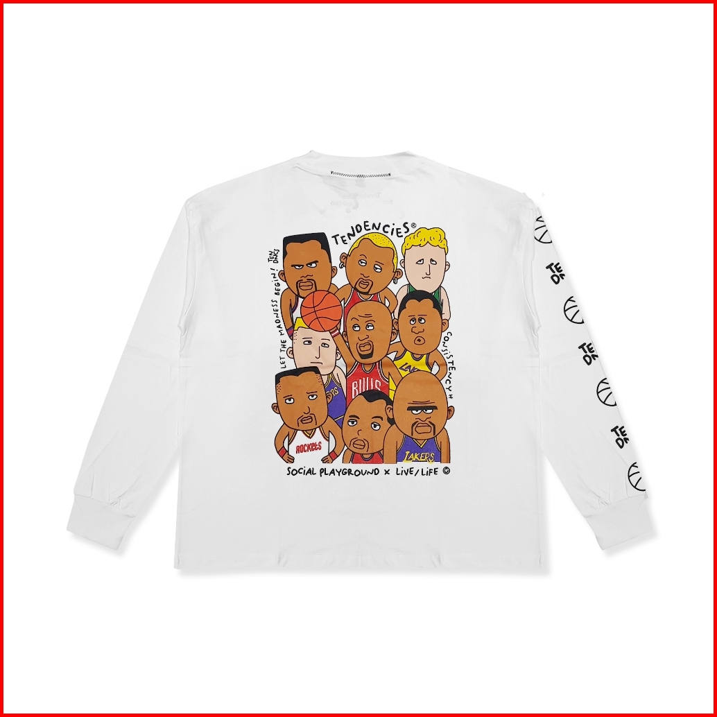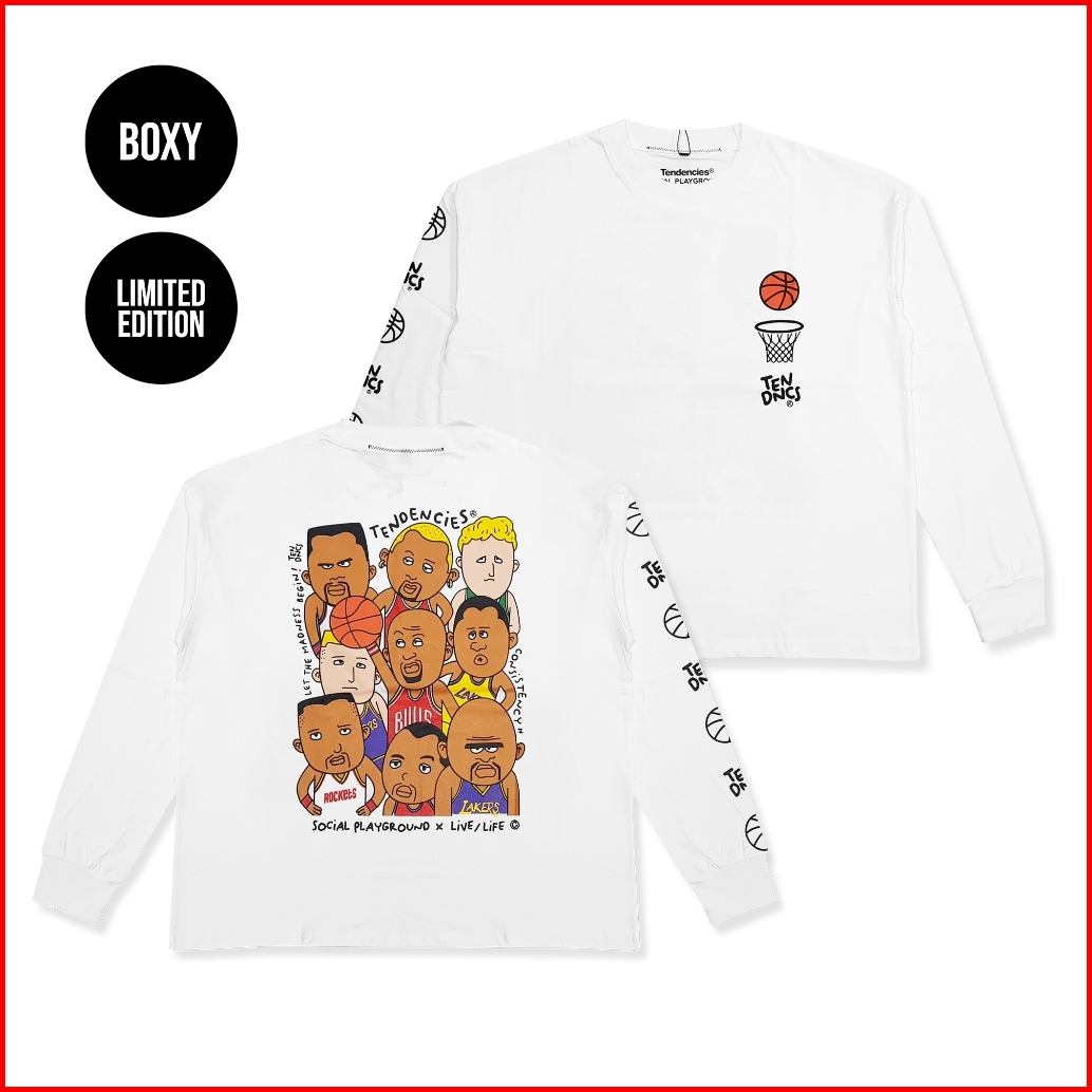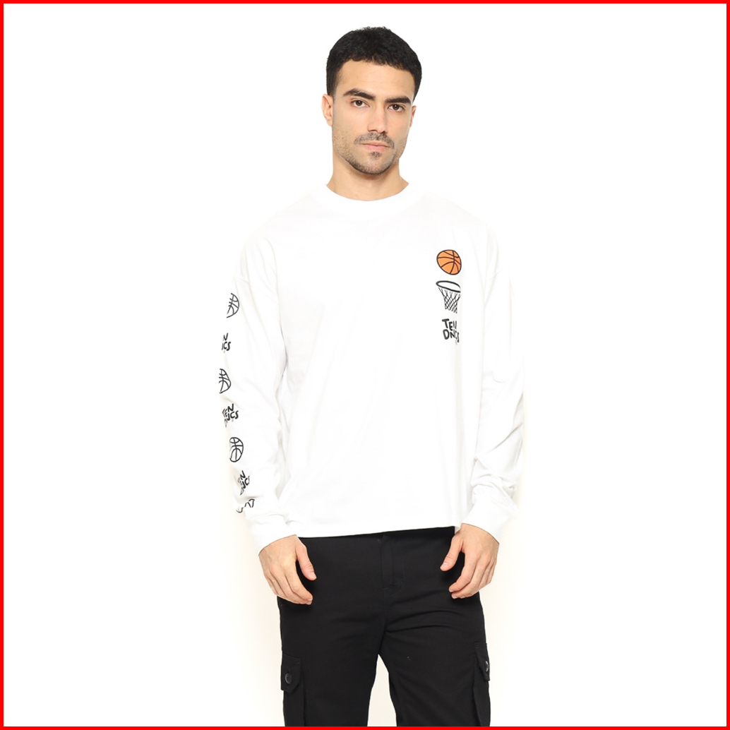 Tendencies Tshirt Long Sleeve Boxy Basketball Madness White Cropped