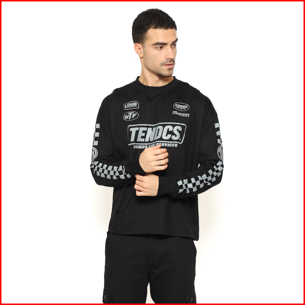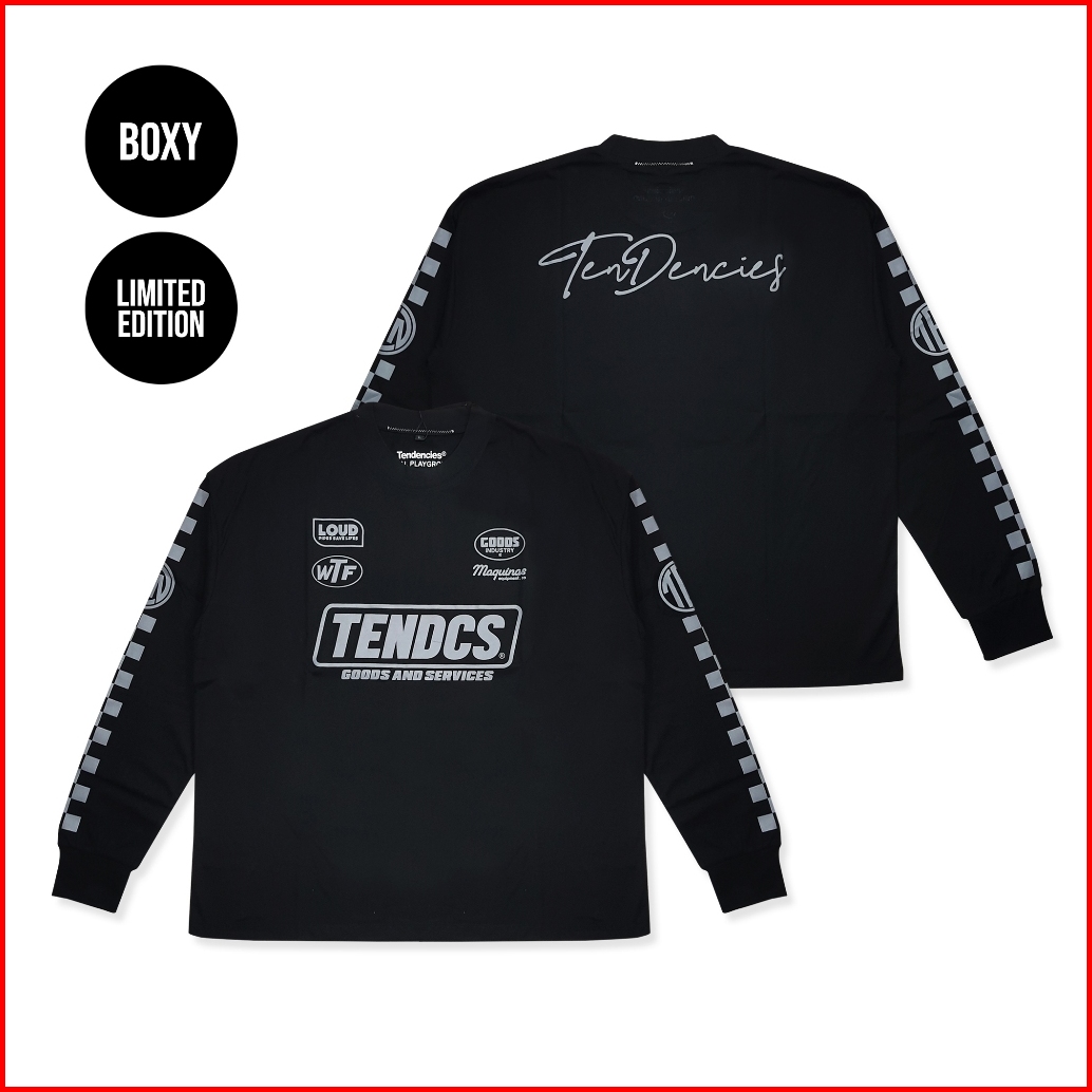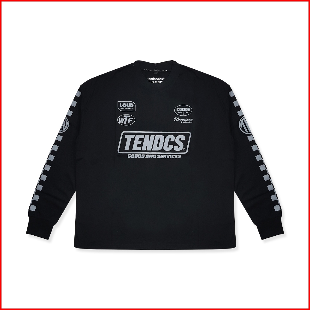Tendencies Tshirt Long Sleeve Boxy Industrial Garage Black On Black Cropped