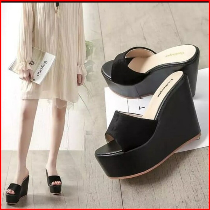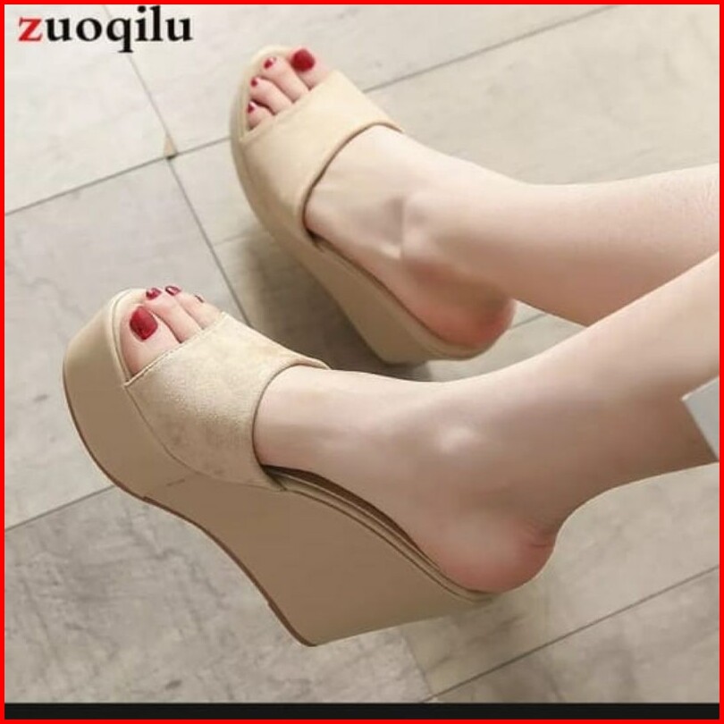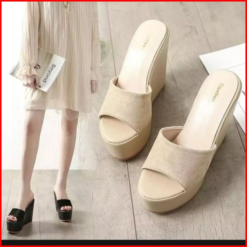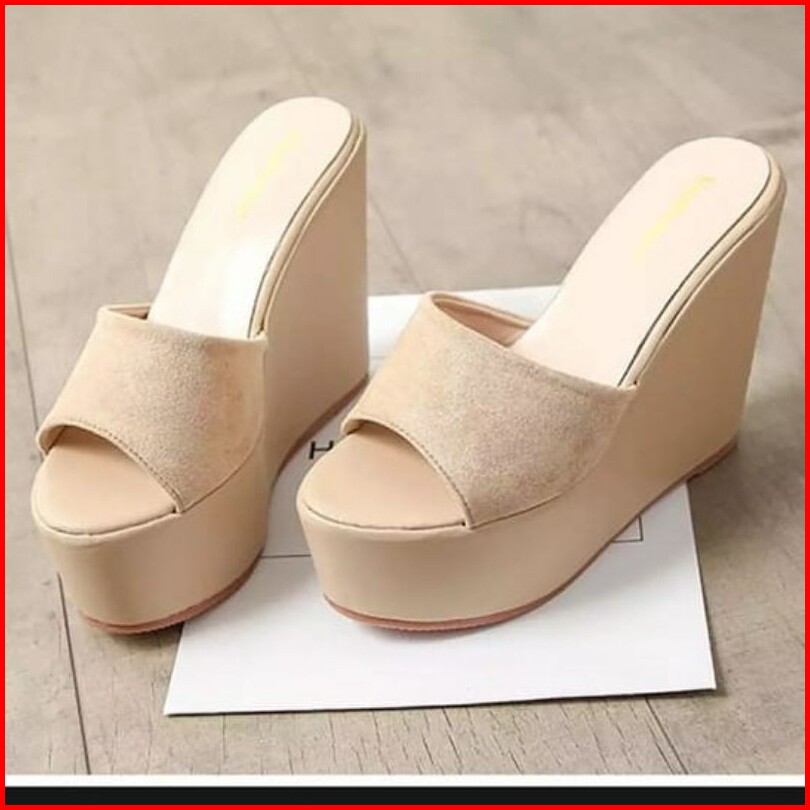 Wedges Highclass Sendal Tinggi Bludru 12cm Al05