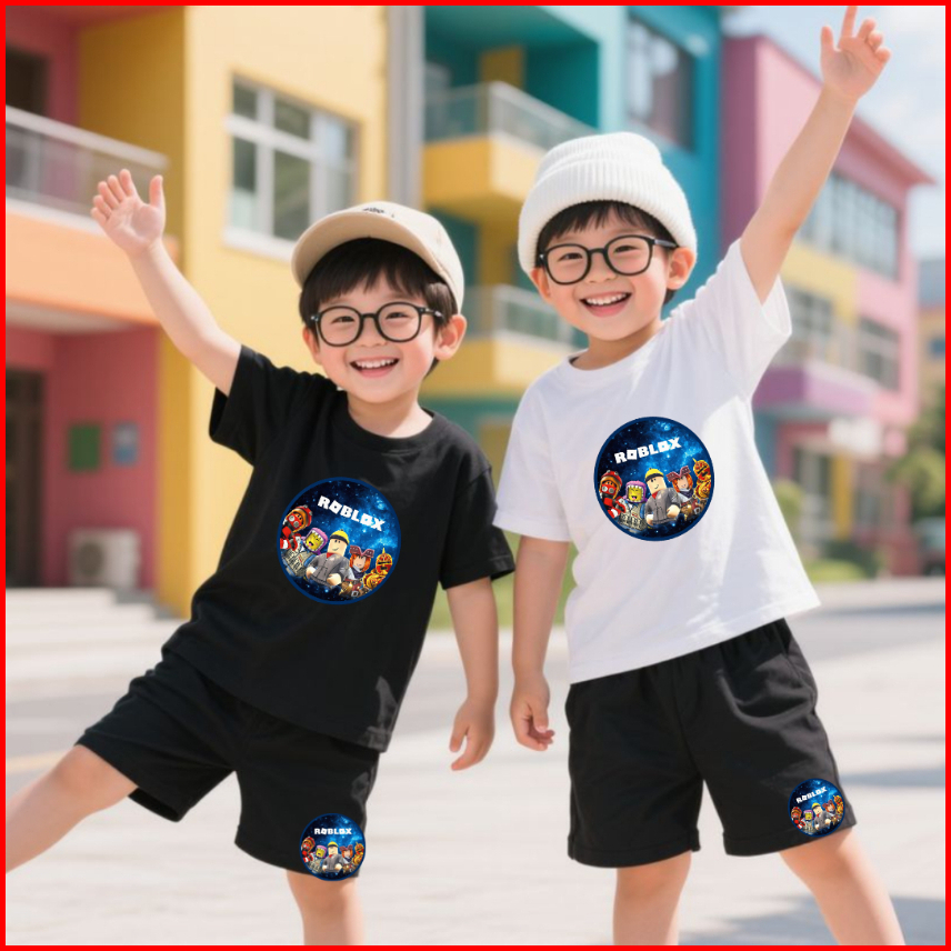 Setelan Kaos Anak Laki Laki Celana Pendek 5-15 Tahun Motif Roblox Round
