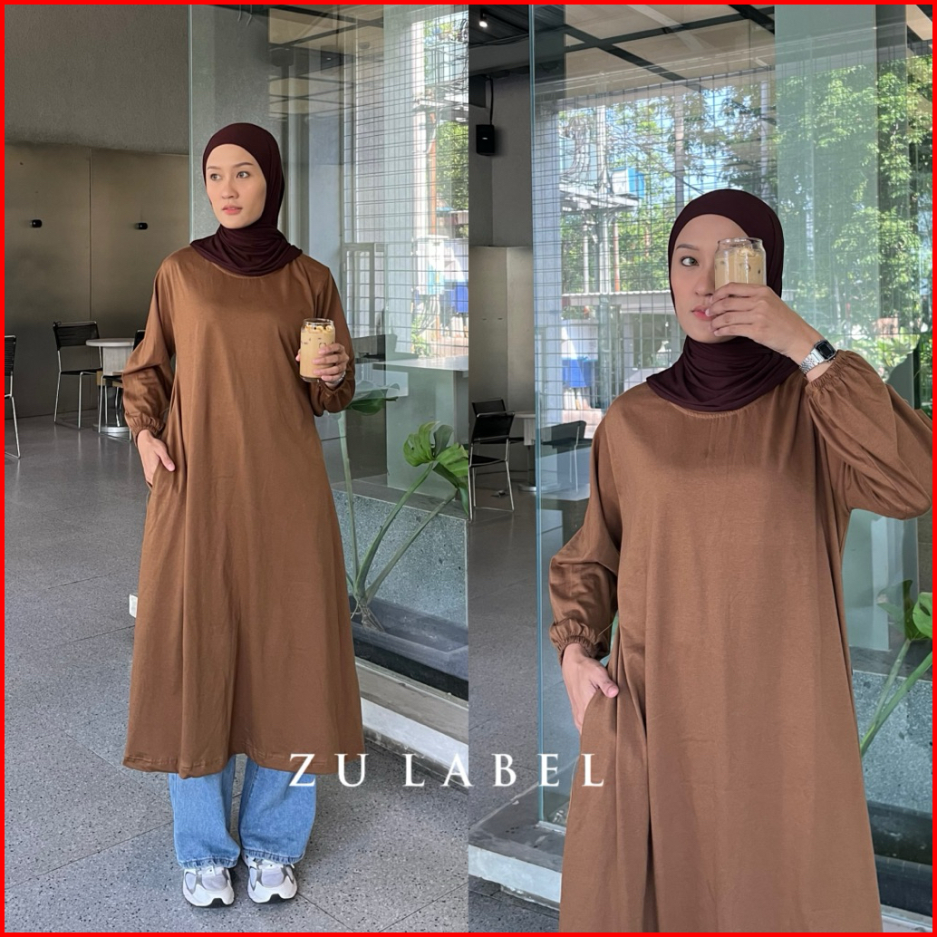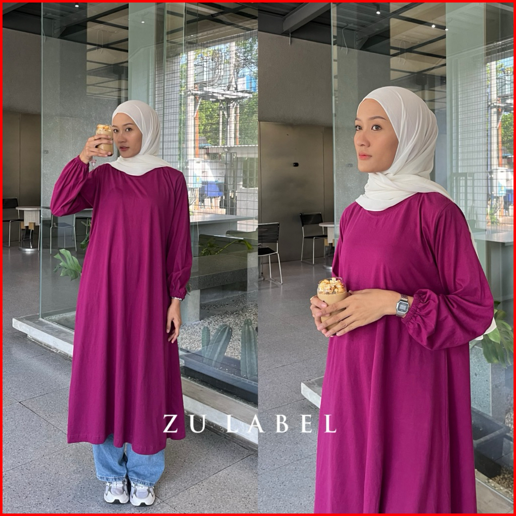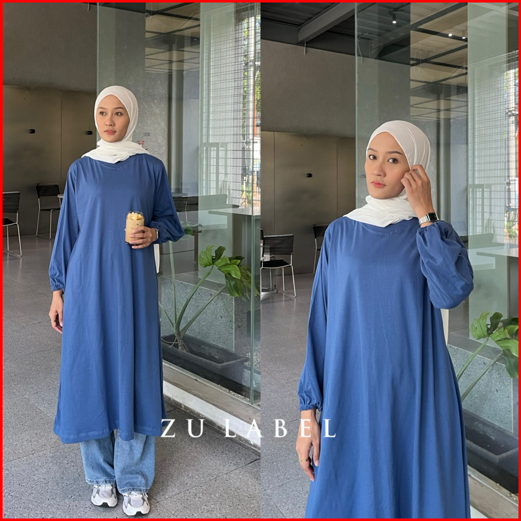 Bella Tunik Midi Kaos Polos Katun Combed 30s By Zulabel