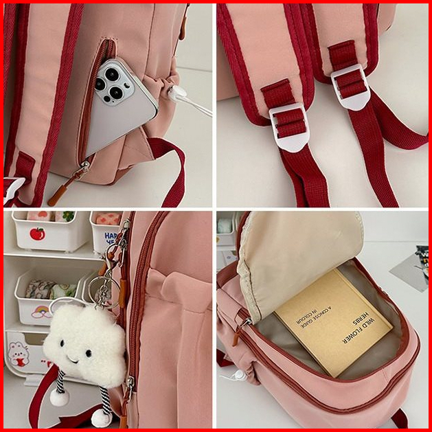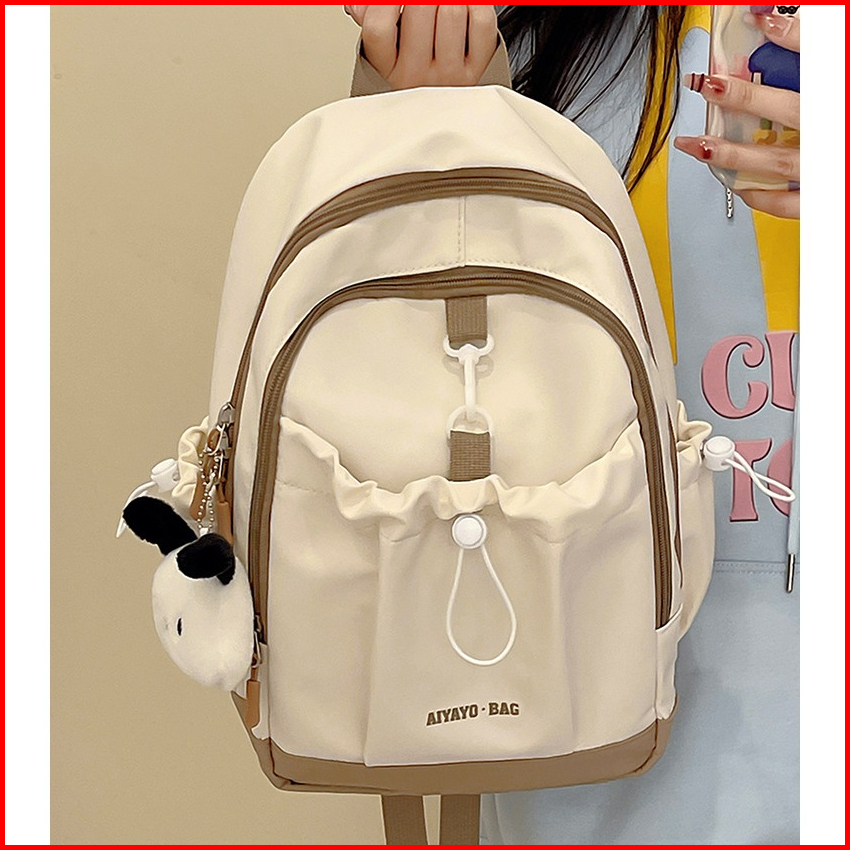 Guvdiv Tas Ransel Wanita Macaron Kuliah Tas Ransel Tas Bahu Warna Tabrakan Backpack Tas Laptop