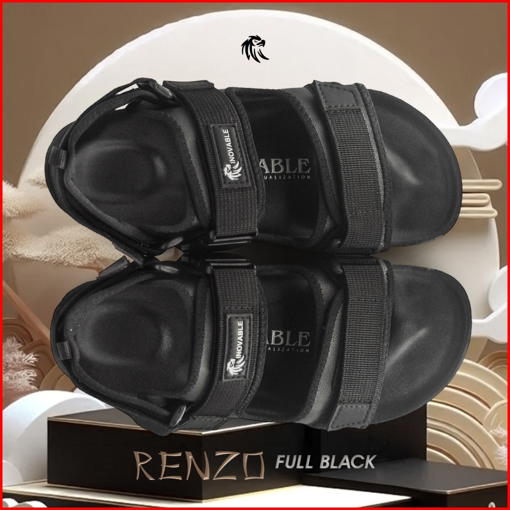 Inovable Sandal Casual Pria Wanita Ringan Nyaman Anti Slip - Renzo Full Black