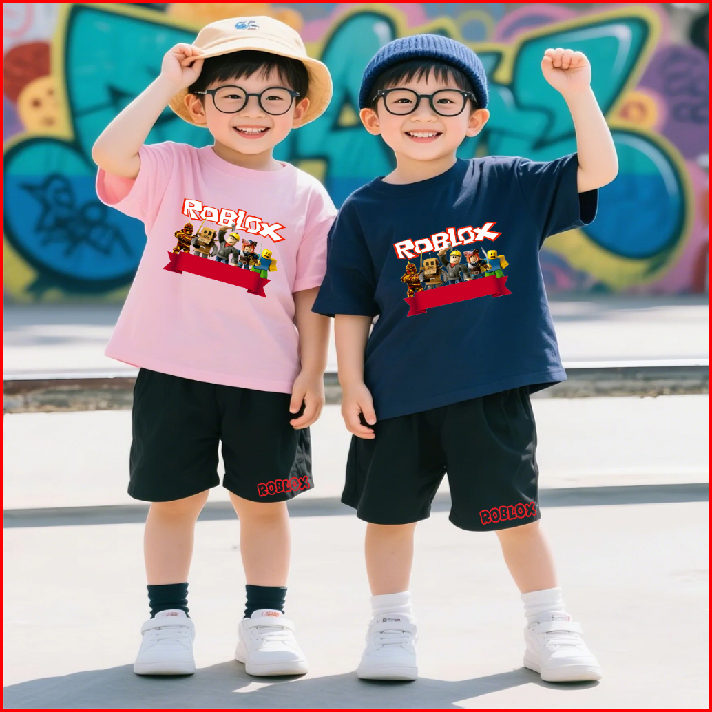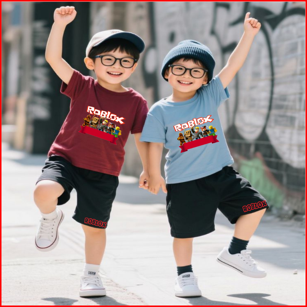 Setelan Kaos Anak Laki Laki Celana Pendek 5-15 Tahun Motif Roblox