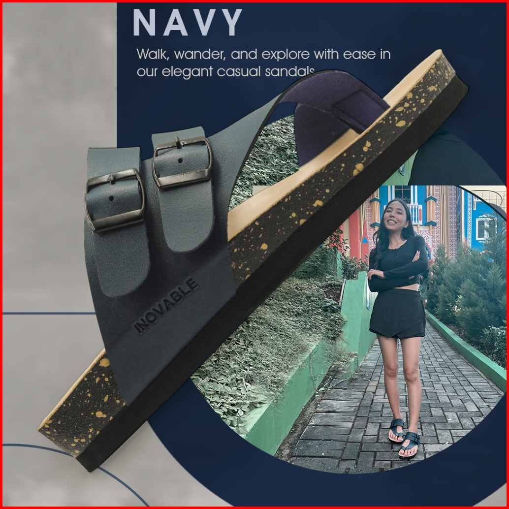 Inovable Sandal Casual Pria Wanita Ringan Nyaman Anti Slip - Herico Navy