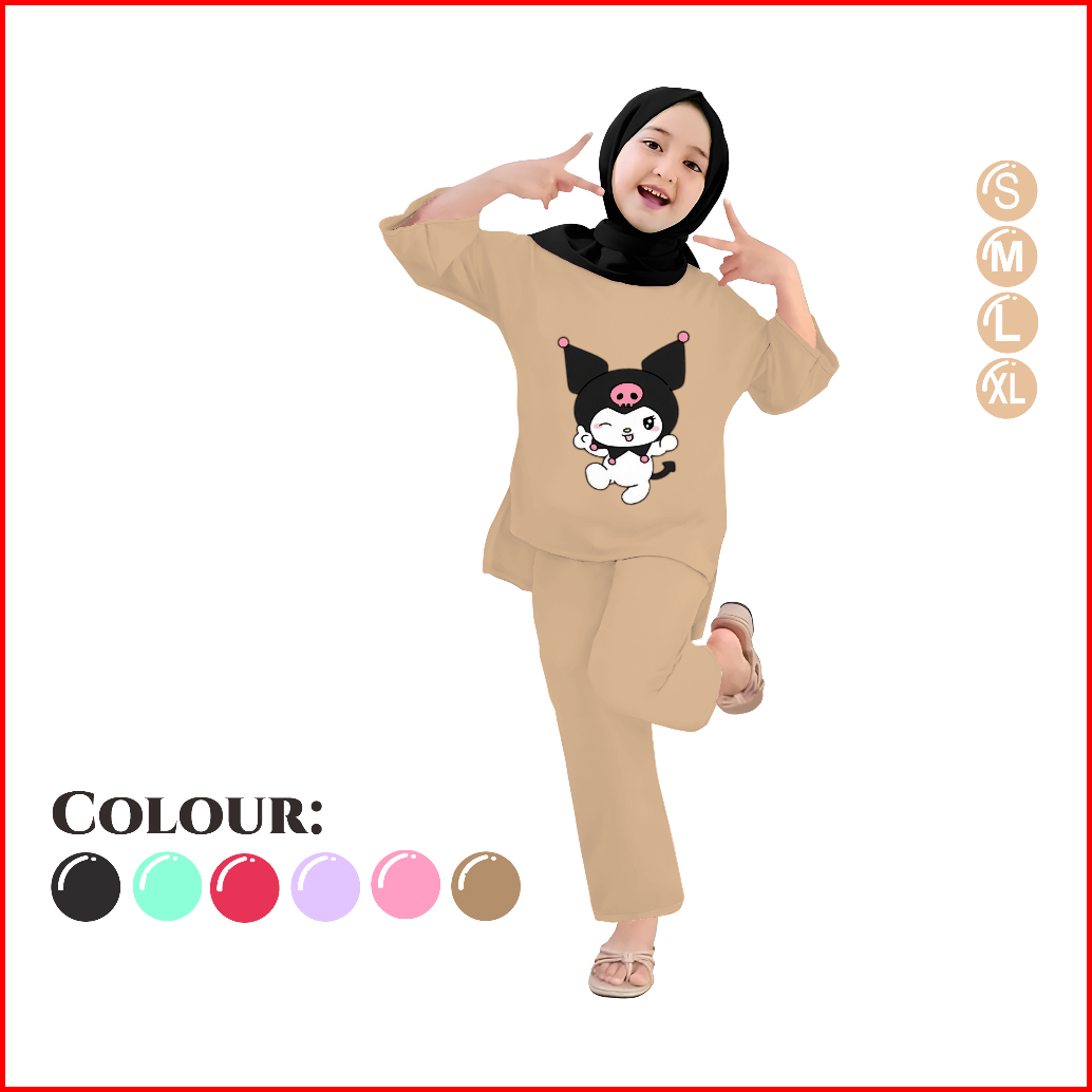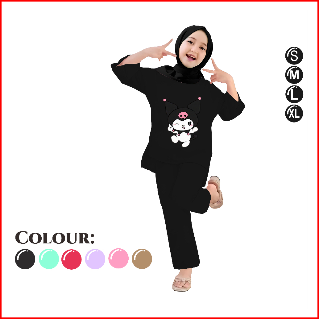 Baju Anak Perempuan - Setelan Kaos Dan Celana Panjang Anak Motif Belah 4-13 Tahun - Hai Kuromi
