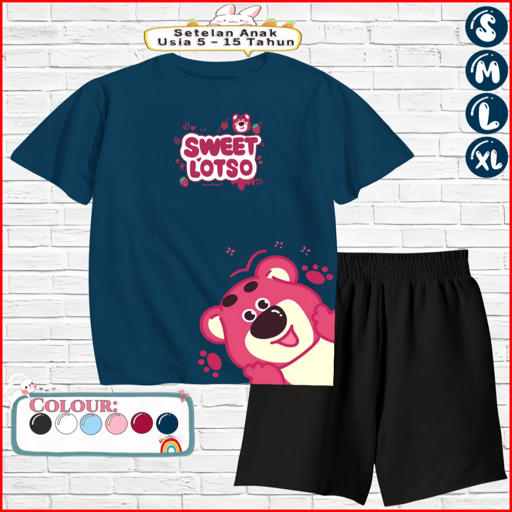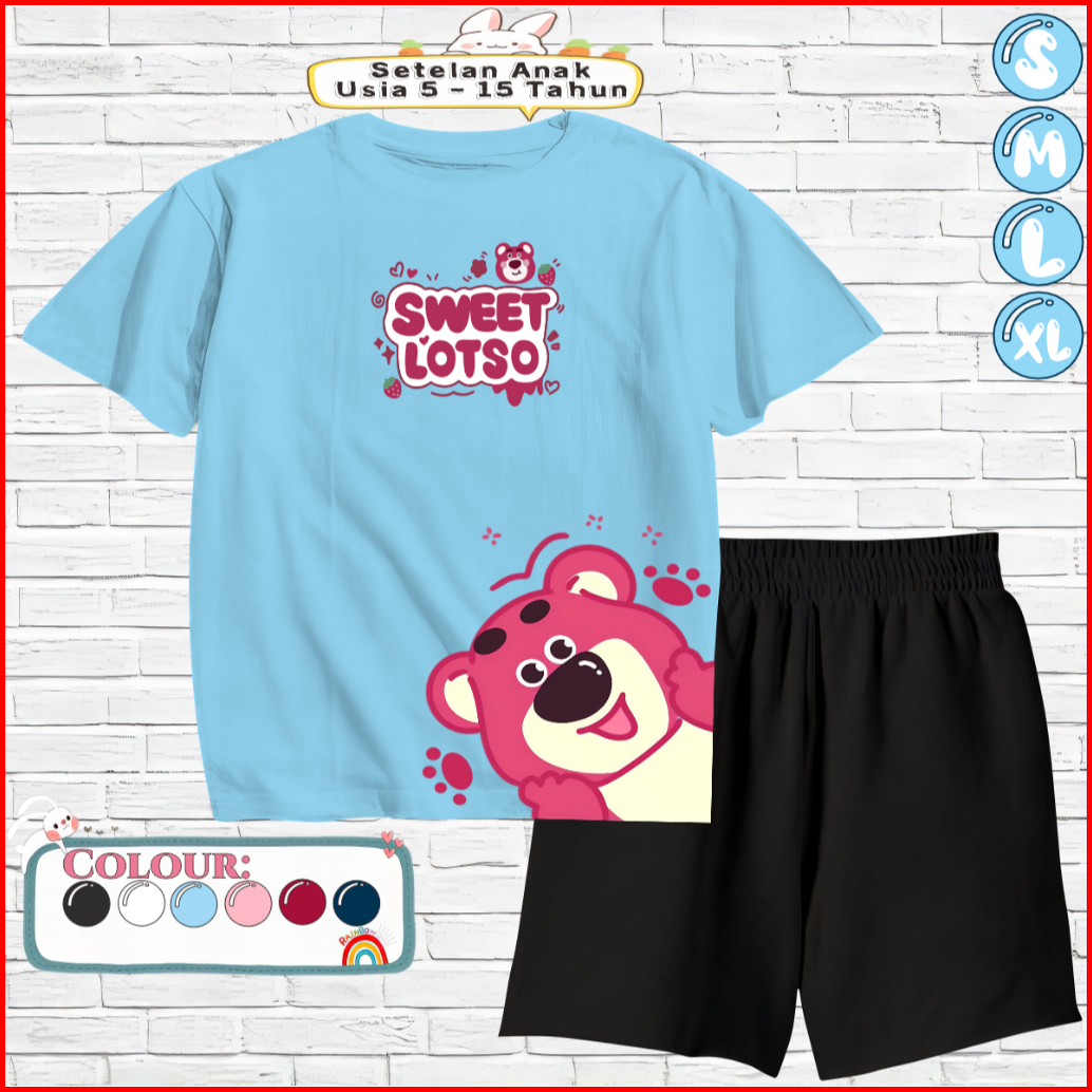Setelan Anak Perempuan Celana Pendek 5-15 Tahun Motif Happy Lotso