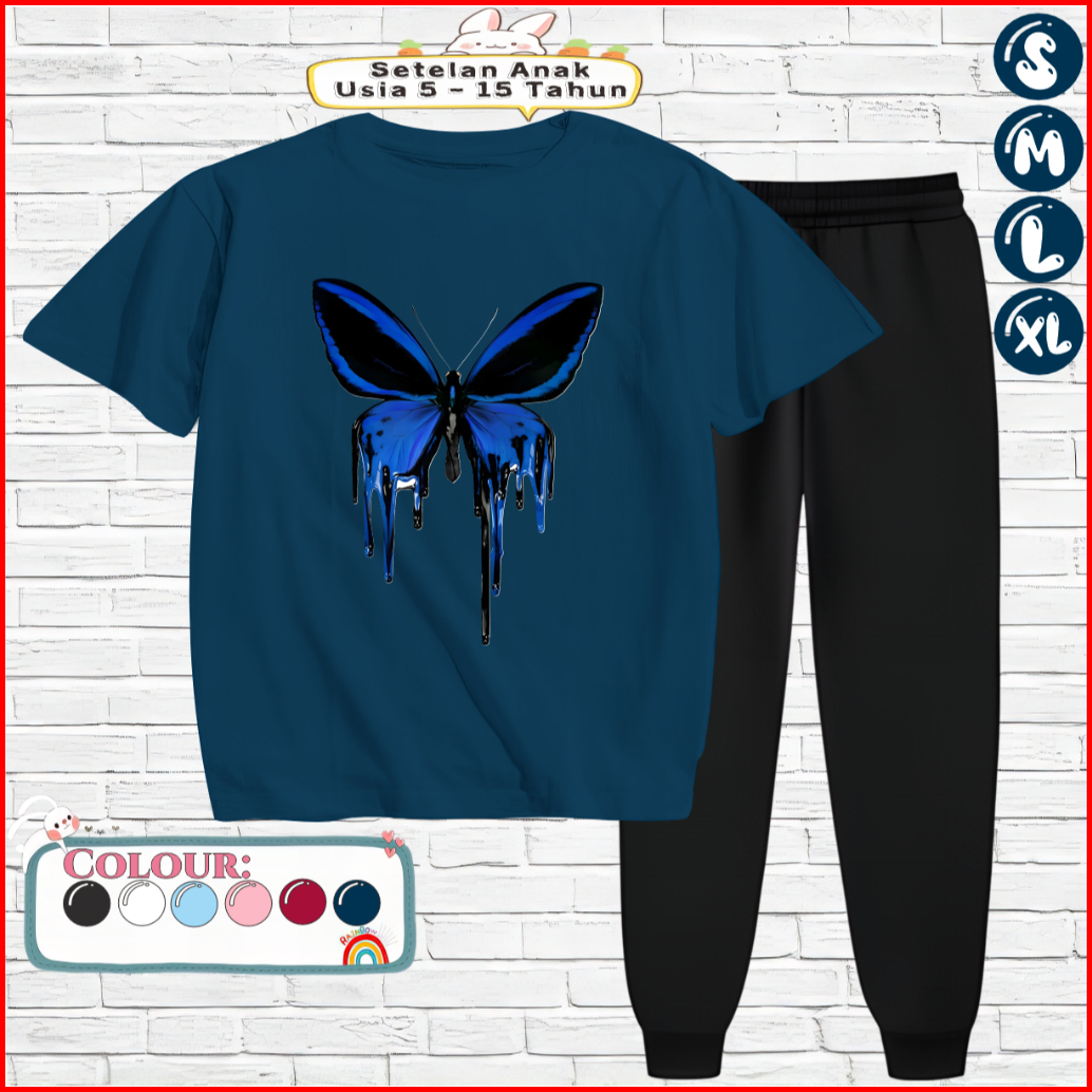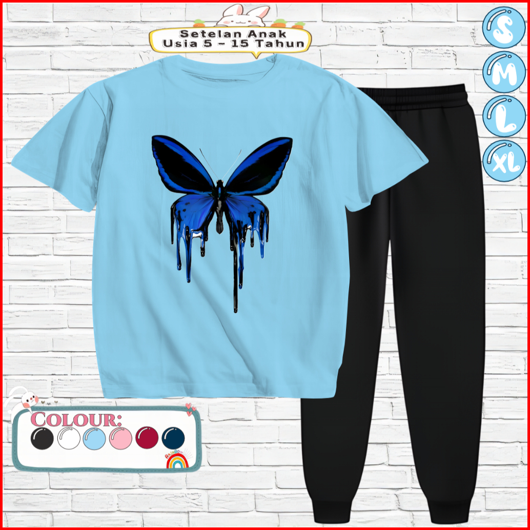 Setelan Anak Perempuan Celana Jogger 5-15 Tahun Motif Black Butterfly