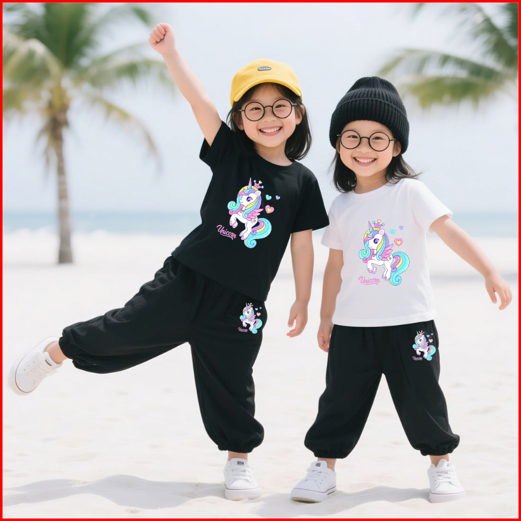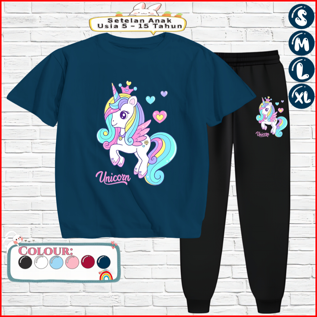 Setelan Kaos Anak Perempuan Dan Celana Jogger 5-15 Tahun Motif Unicorn