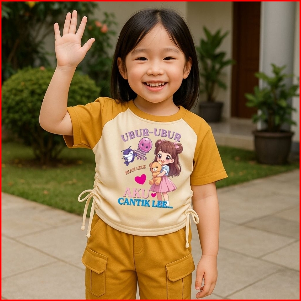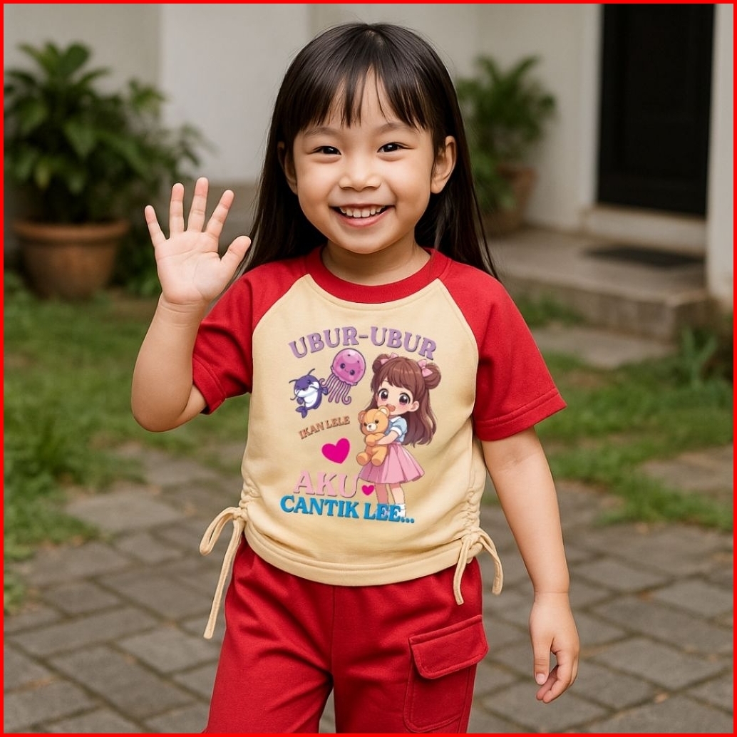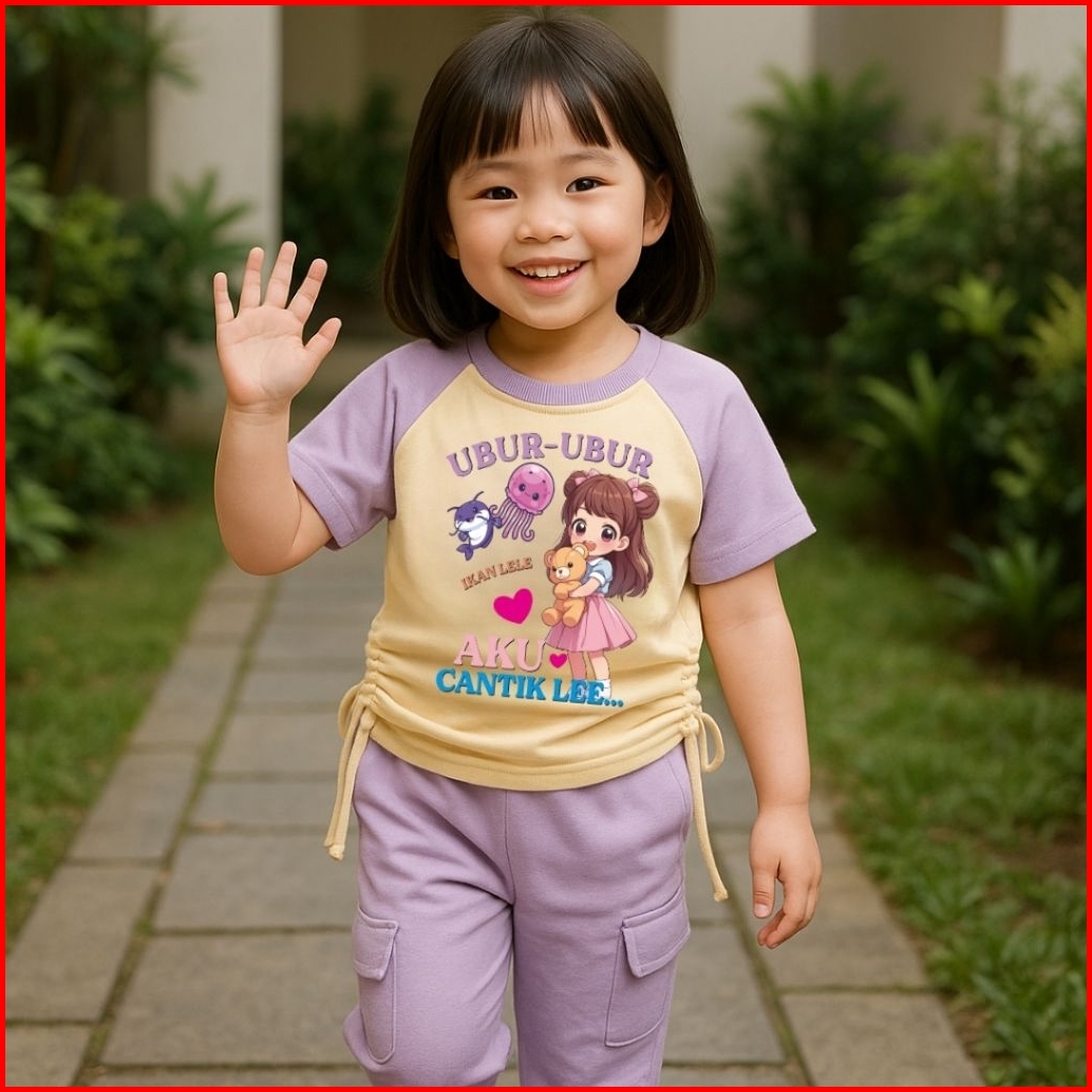 Baju Anak Perempuan Setelan Model Serut Motif Ubur-ubur Ikan Lele Usia 1 Sampai 8 Tahun
