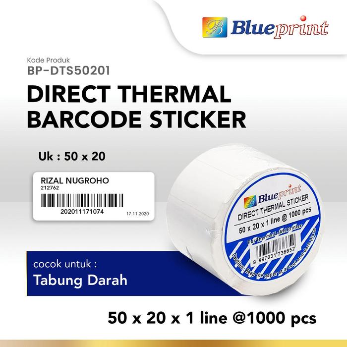 Direct Thermal Sticker Kertas Label Stiker BLUEPRINT 50 x 20 50x20 mm Isi 1000 - 1 Roll - 1