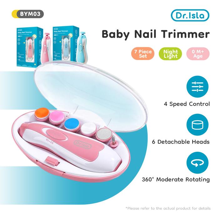 Dr.isla Penggiling kuku elektrik bayi baru lahir dengan pemotong kuku bayi ringan BYM03 - Blue
