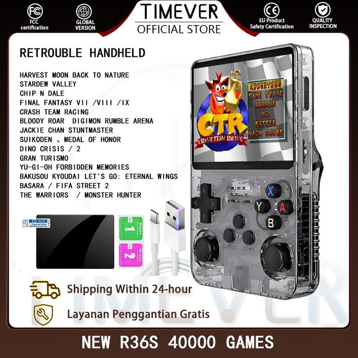 NEW Upgrade R36s Retro handheld multi gaming console | Game Retro 128GB 40000+ Classic Game - Hitam Transparan