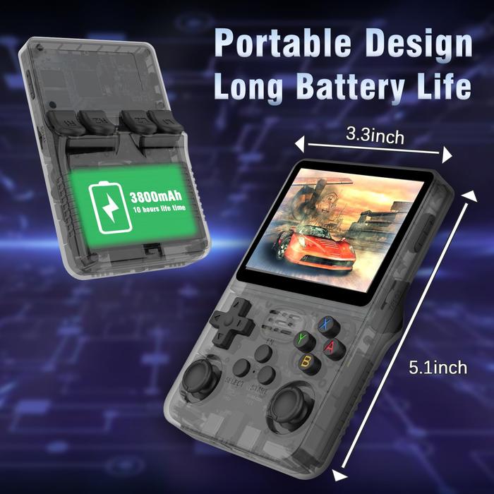 NEW R36S Retro handheld multi console | Game Retro 128GB 40000+ Classic Games konsol genggam - Hitam Transparan
