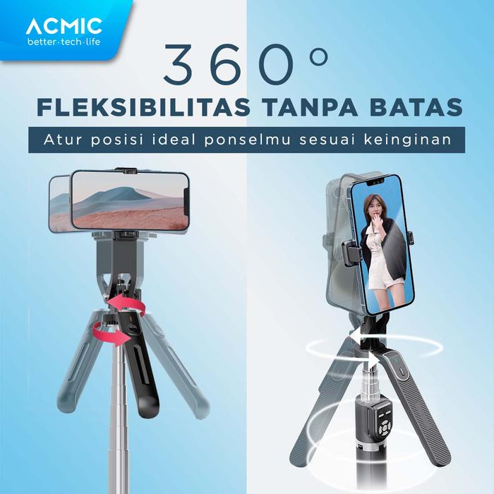 [NEW LAUNCH] ACMIC QR18 QR22 360 Rotating Moving Tongsis Tripod Quadpod 4 Kaki Bluetooth Remote
