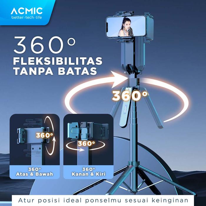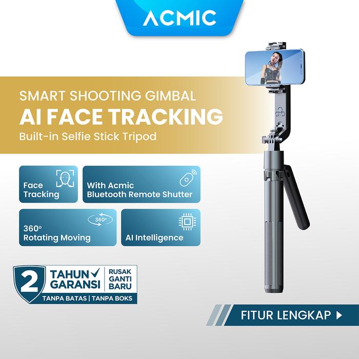 [NEW LAUNCH] ACMIC QS18 Face Tracking Gimbal Tongsis Tripod Quadpod 4 Kaki Bluetooth Selfie Stick