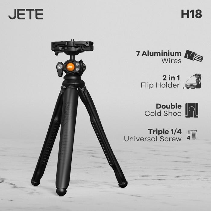 Tripod JETE H18 Mini Gorilla Octopus Flexible 360 with Ball Head 2in1 for Handphone & Camera -