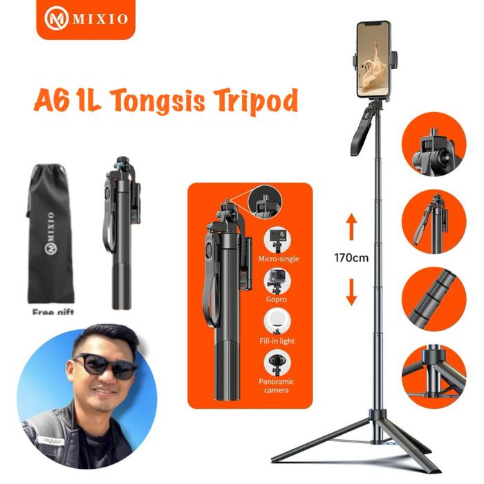 [EXCLUSIVE KANG MUMU] MIXIO A61L 170CM Tongsis Bluetooth Remote Selfie Stick Tripod