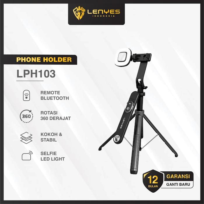 LENYES LPH103 Tongsis Selfie Stick Tripod Kamera HP With Remote Bluetooth Lampu LED Monopod Portable
