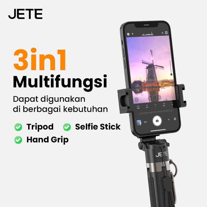 JETE Tripod Bluetooth H19 Portable Mini Tongsis Selfie Stick 360 Rotation With Postel Wireless
