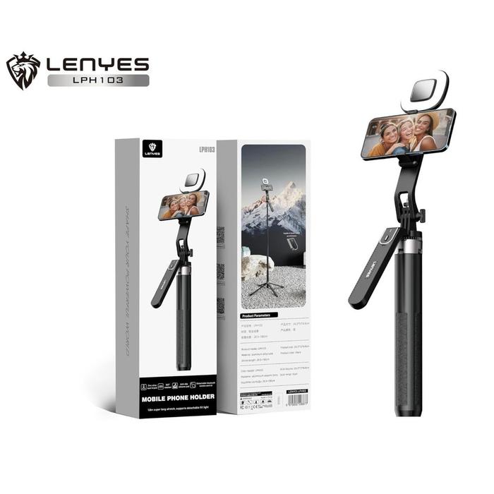LENYES LPH103 Tripod Tongsis 1.8M Bluetooth Remote with LED Light Aluminium Foldable for Vlog Live