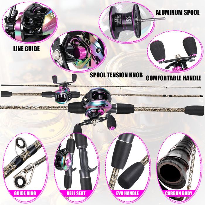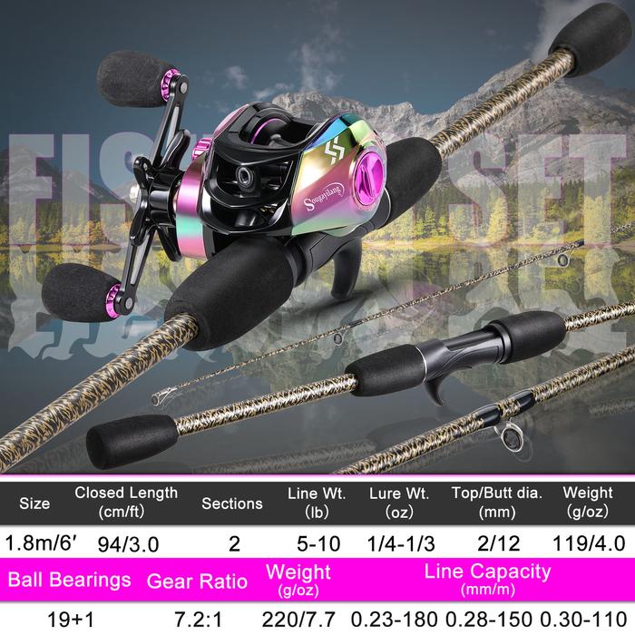 Sougayilang Joran dan Gulungan Pancing Kombo, Joran Pancing Casting 1.8M dengan Rasio Gir 7.2:1