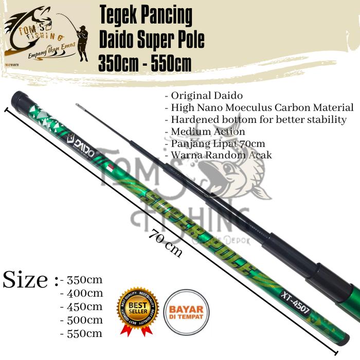 Tegek Pancing Daido Super Pole 350cm - 550cm Carbon (Ruas Panjang 70cm) Lengkap Murah Berkualitas -