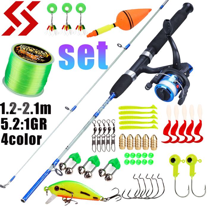 Sougayilang Joran Pancing Biru, Rasio Roda Gigi 1.2M-2.1M 5.2:1 dengan Umpan dan Senar Pancing