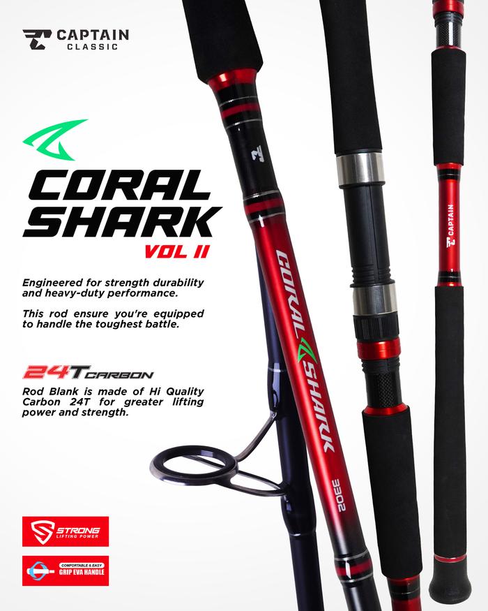 Joran Pancing CAPTAIN CORAL SHARK Gen 2 240cm - 330cm (Carbon) Jigging Murah - Toms Fishing