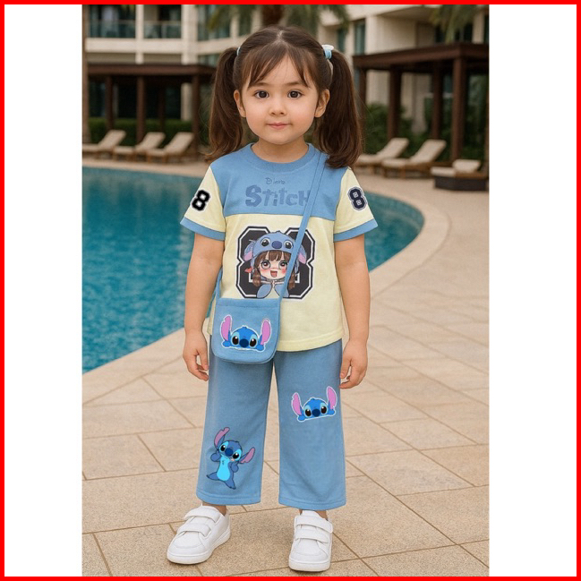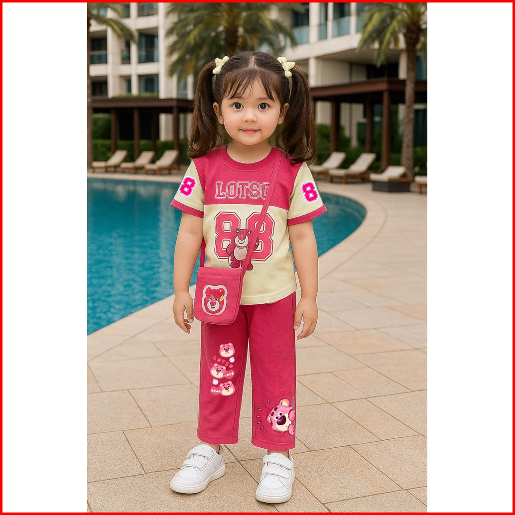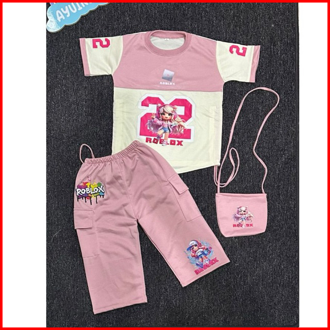 Setelan Baju Anak Perempuan Karakter Terbaru Model Jersey Base Ball Free Tas 2 - 8 Tahun