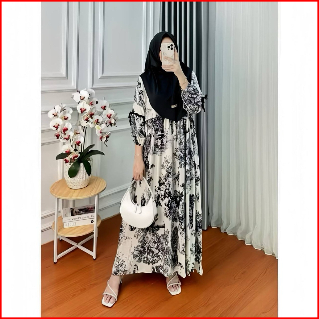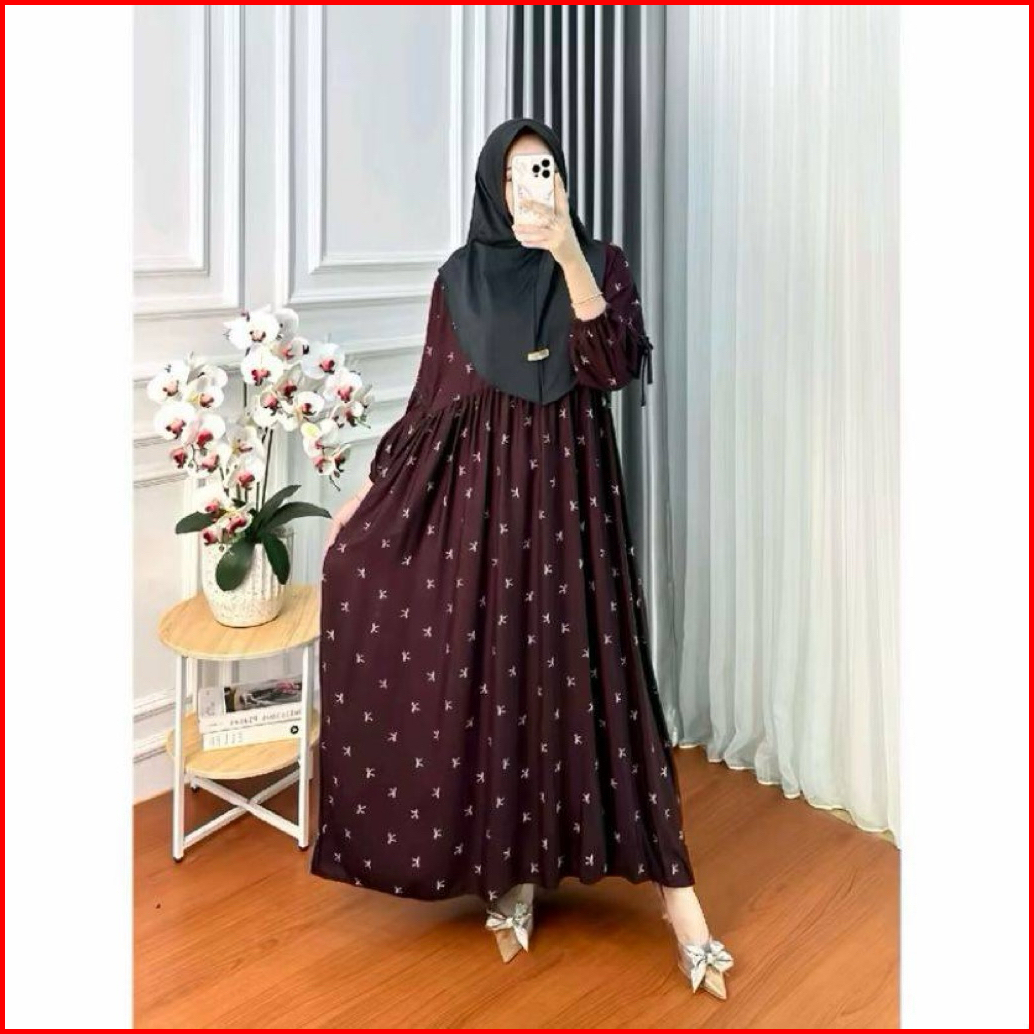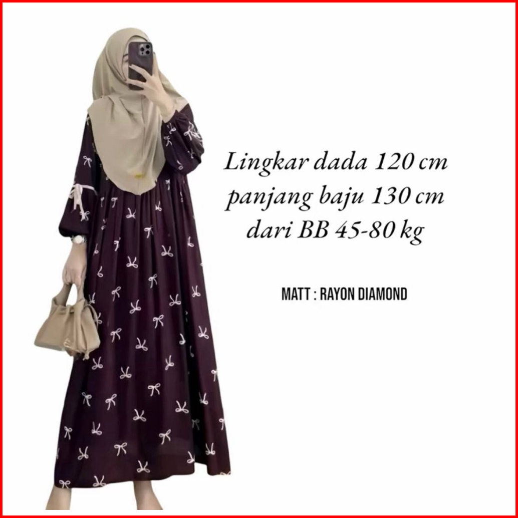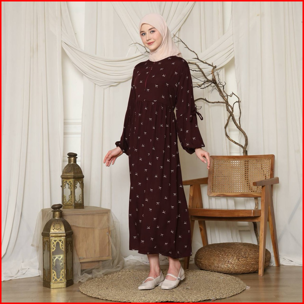 Velisa Maroon Ribbon Dress - Gamis Premium Motif Pita Elegan Muslimah Modern