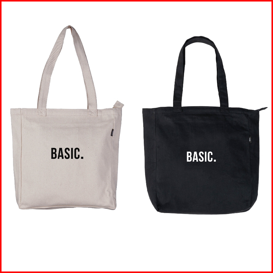 Flade Studios Tote Bag Kanvas Cream Hitam Resleting - Tas Pria Wanita - Basic Series