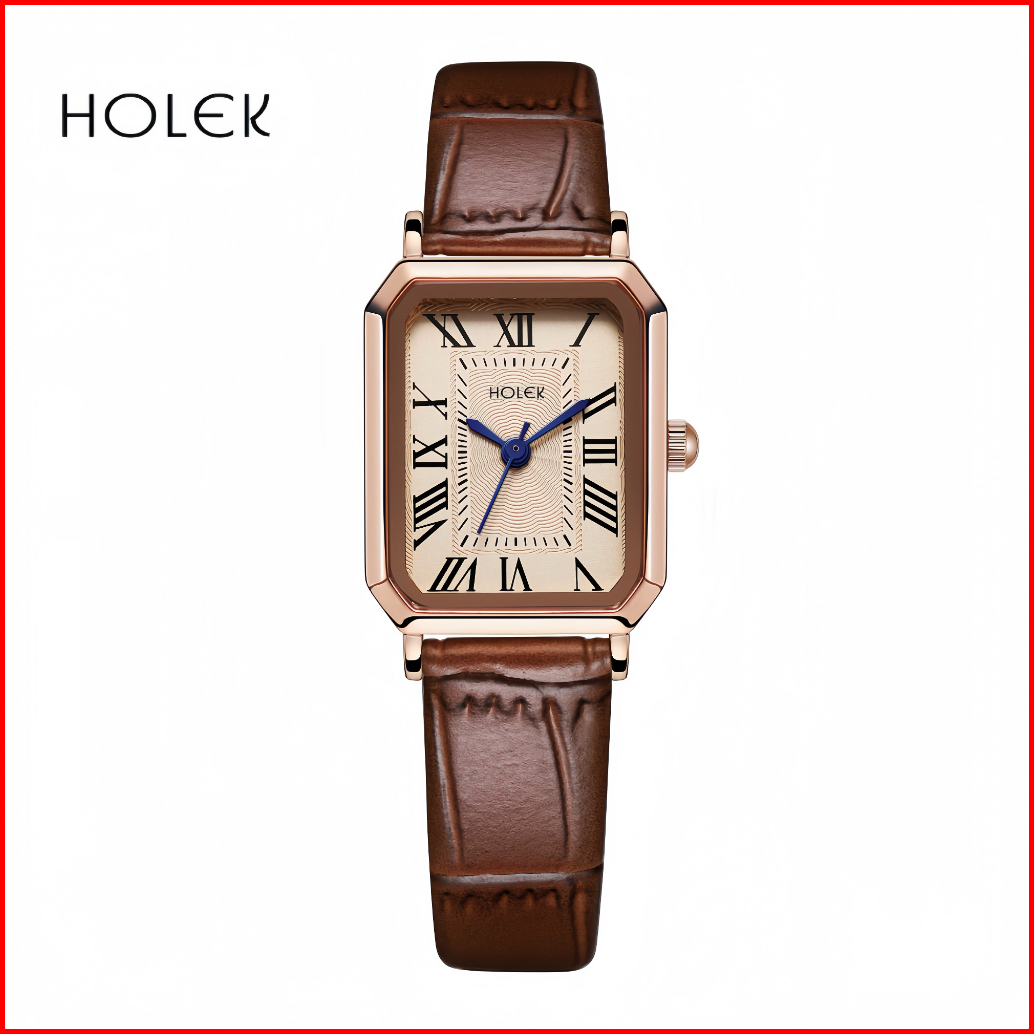 Holek 82012 Jam Tangan Wanita Baru Temperamen Sederhana Ringan Mewah Retro Sabuk Kulit Coklat Tahan Air Jam Tangan Wanit