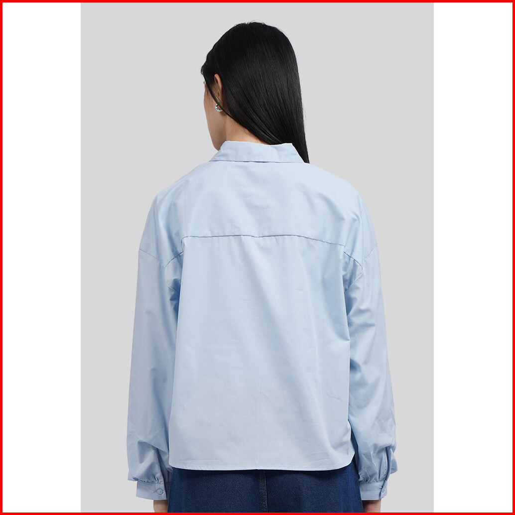Executive Balloon Sleeve Blouse With Fancy Button Lt. Blue