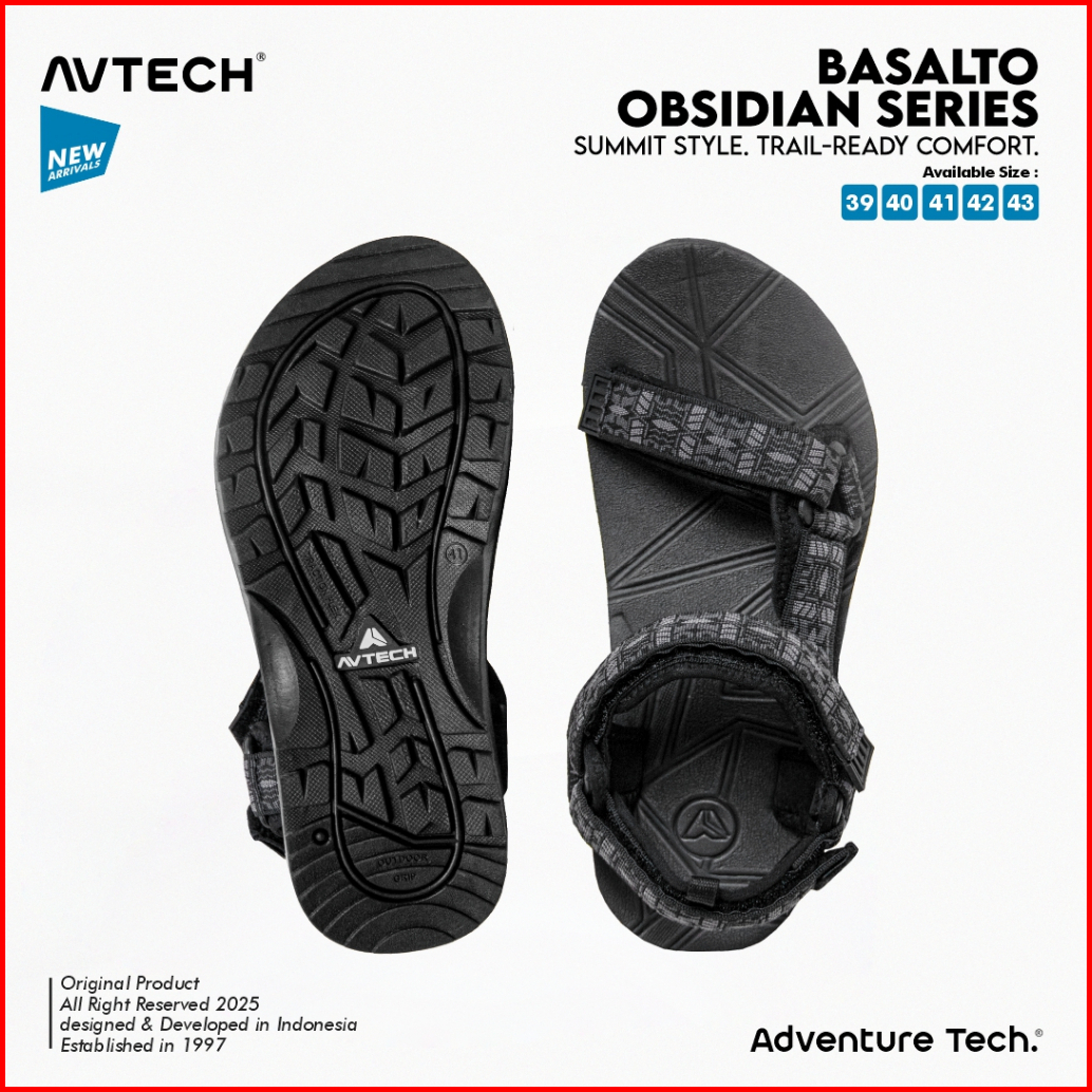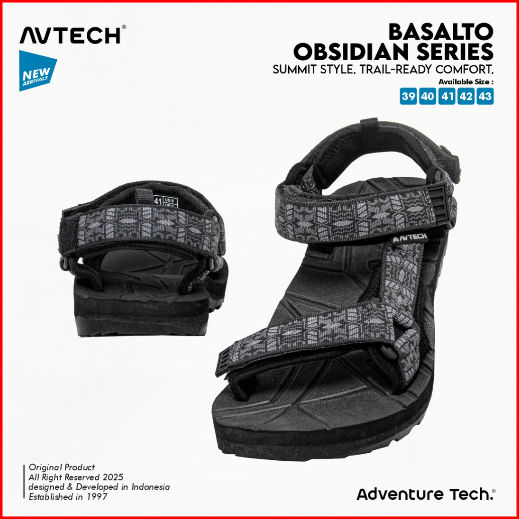 Avtech - Sandal Gunung Hiking Outdoor Adventure Trekking Travel Harian - Basalto Obsidian Series