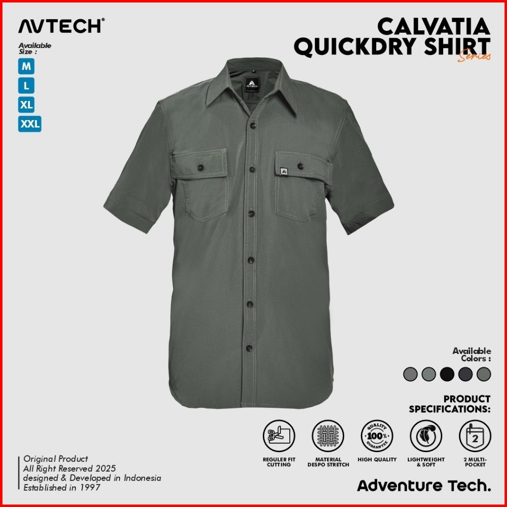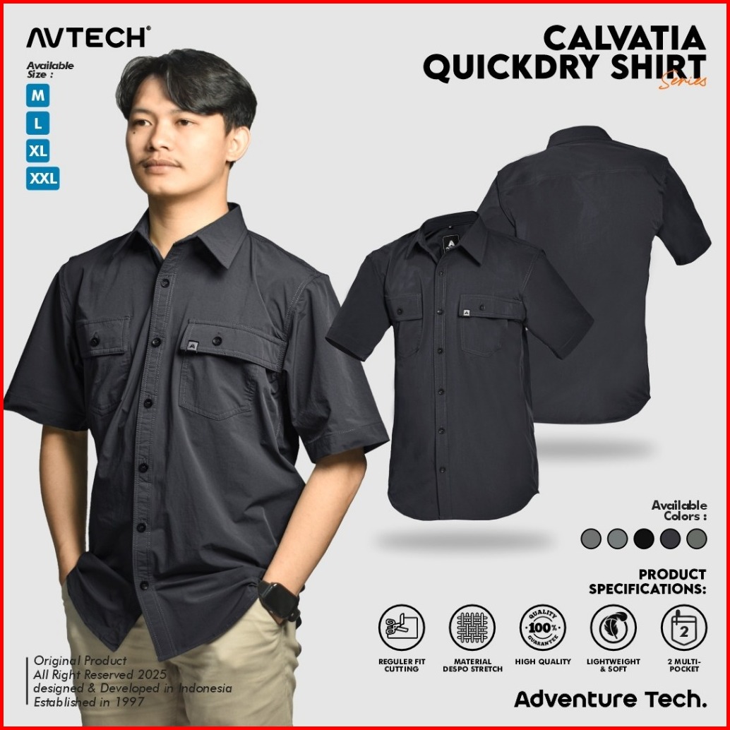 Avtech - Kemeja Lengan Pendek Pria Wanita Workshirt Formal Kerja Quickdry Reguler Fit - Calvatia