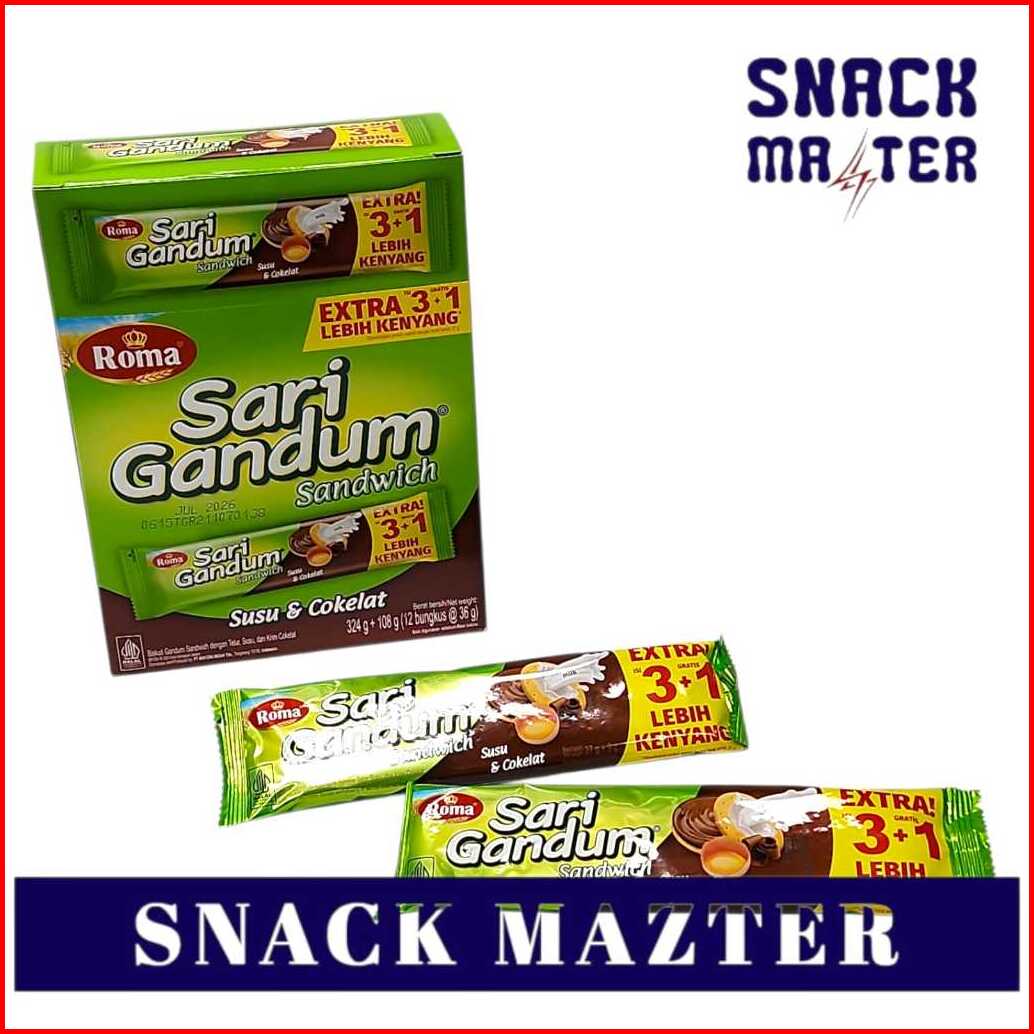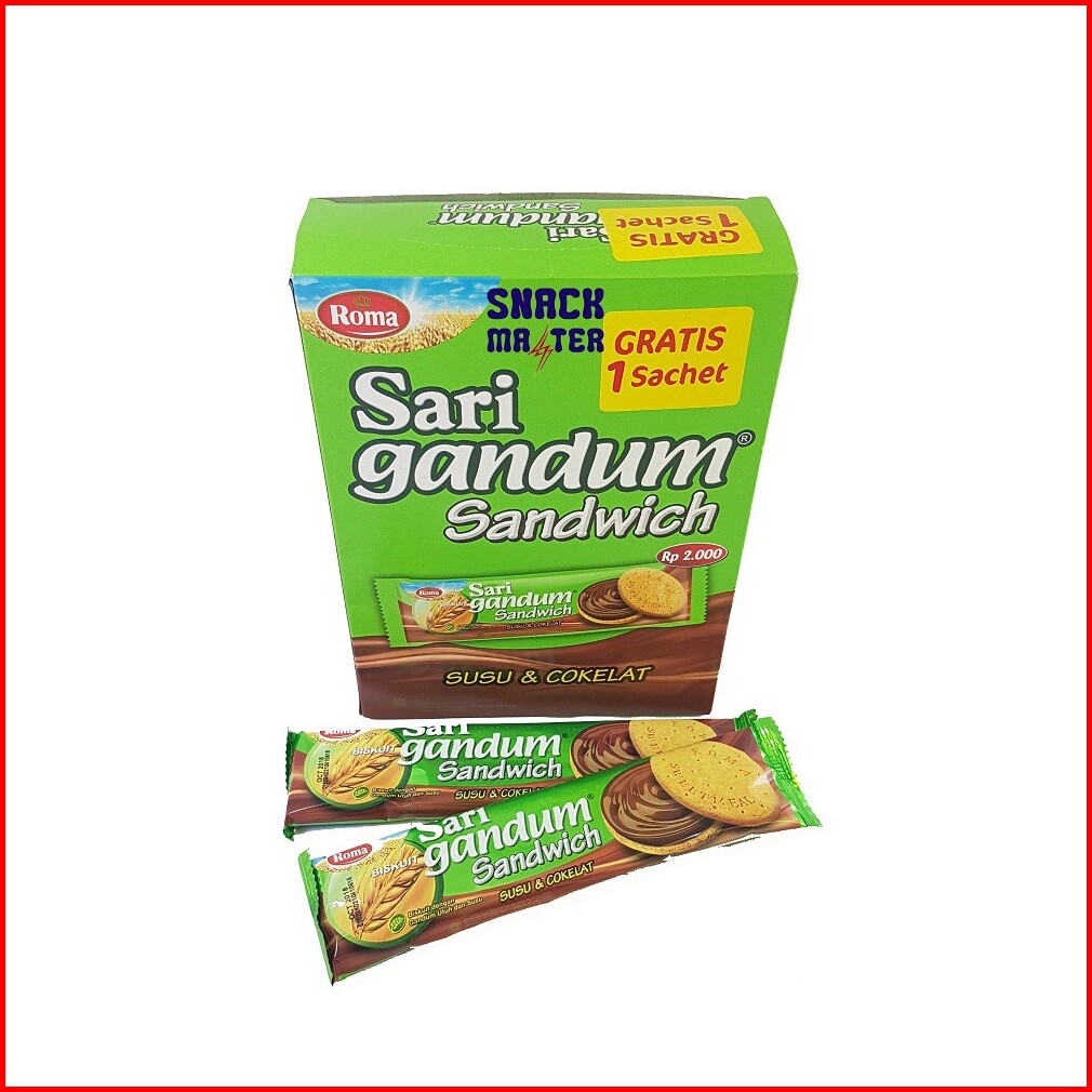 Roma Sari Gandum Sandwich Susu Cokelat - Netto 12 Pcs X 39gr