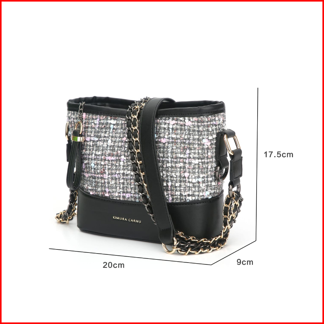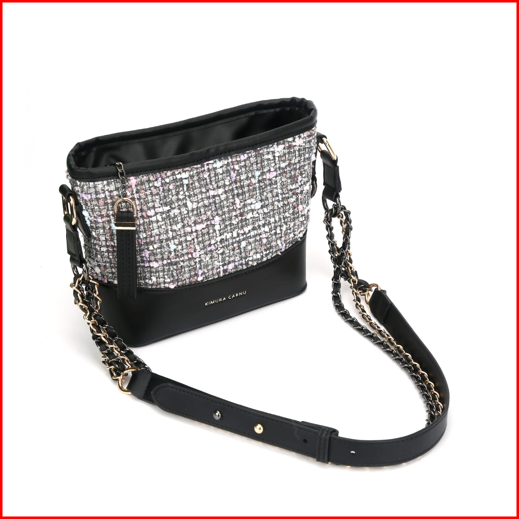 Kimura Carnu - Slingbag Tali Rantai Rantai Black Silver Tas Rajut Wanita 6119