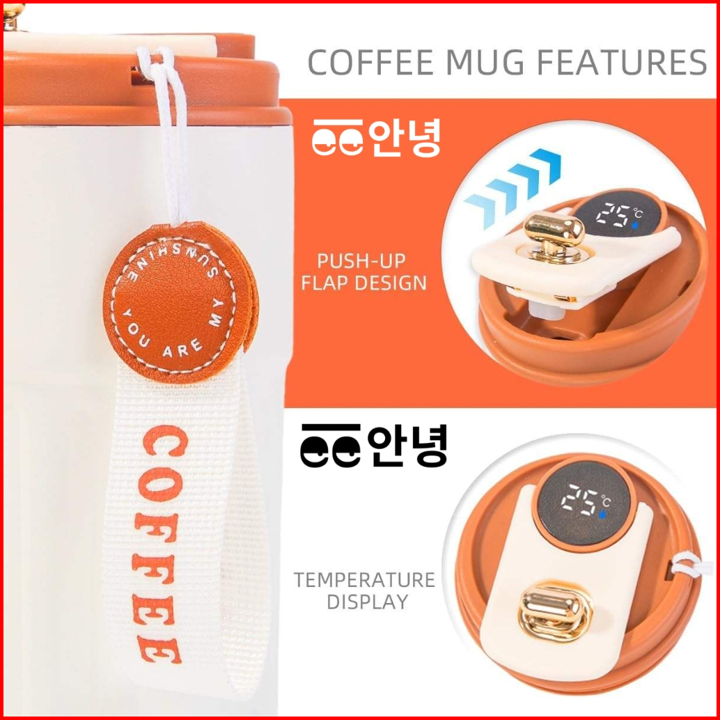Trendee Tumbler Kopi Led Estetik 450ml Termos Stainless Vacuum Untuk Kopi Teh Tahan Panas Dingin