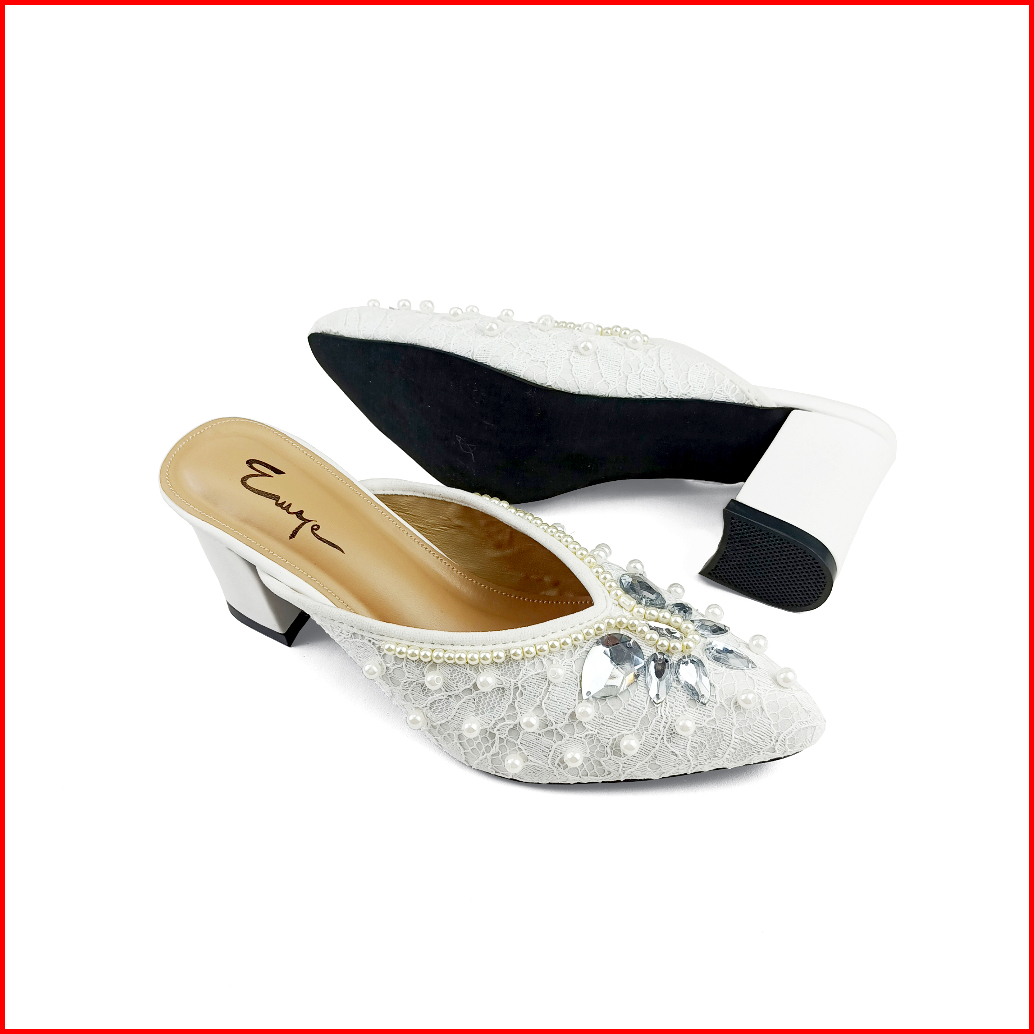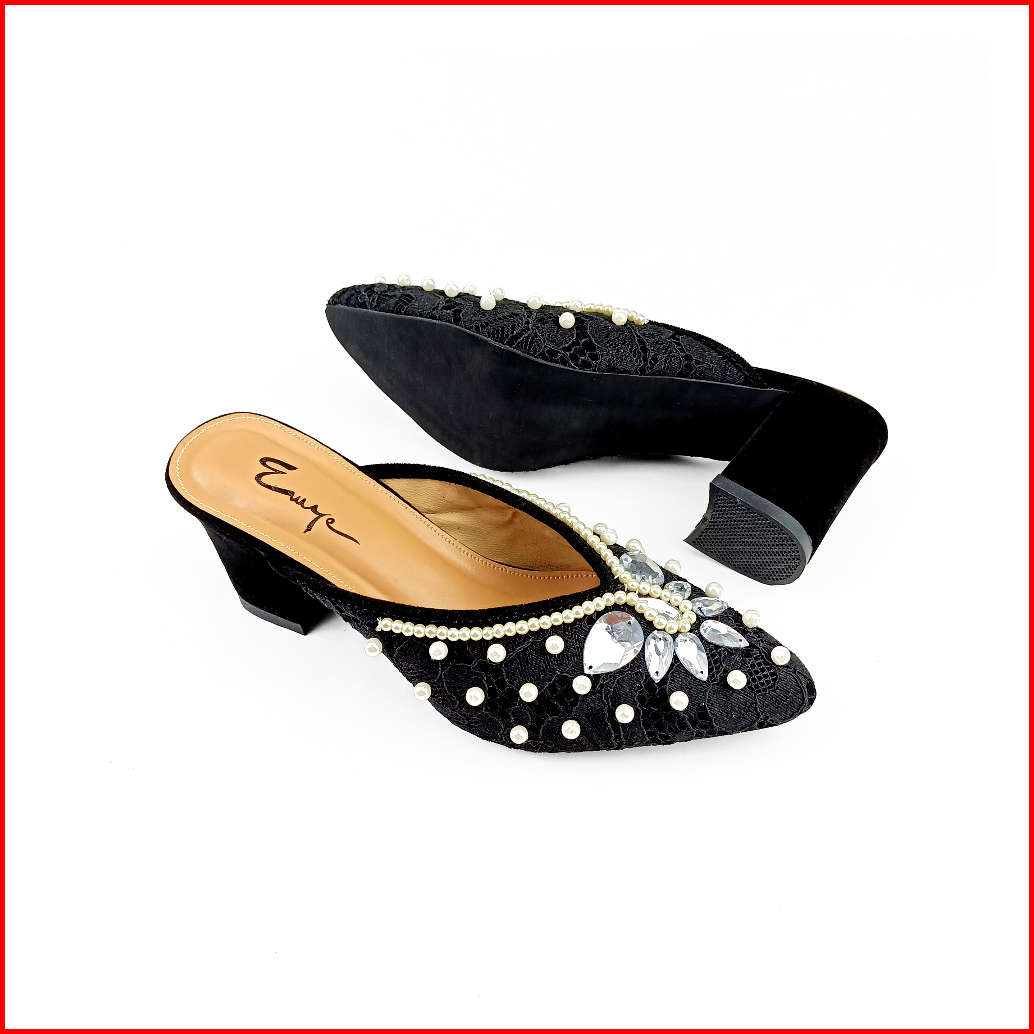 Emye - Sandal Pesta Brukat Payet Wanita 5 7 Cm Sendal Kondangan Wanita