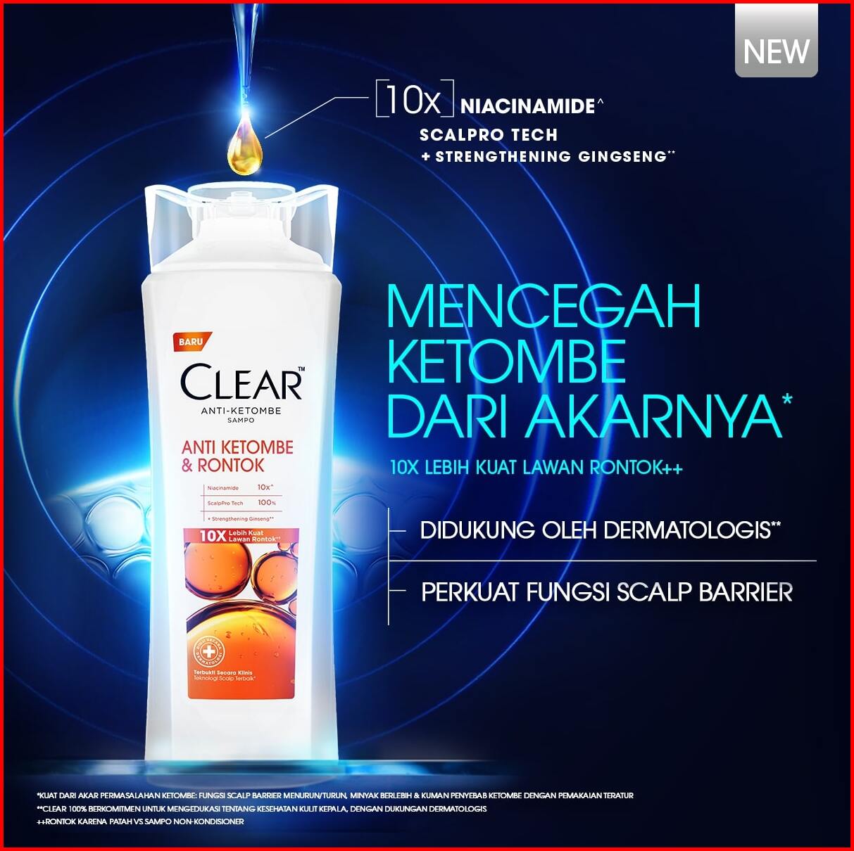 Clear Shampoo Anti Ketombe Rambut Rontok Diperkaya Dengan Ginseng 10x Rambut Lebih Kuat Lawan Rontok Dan 10x Super Vitam