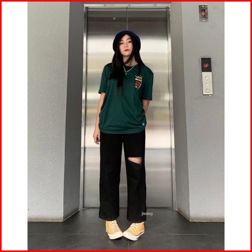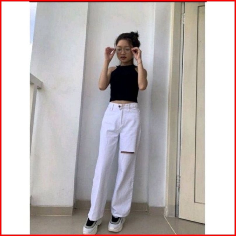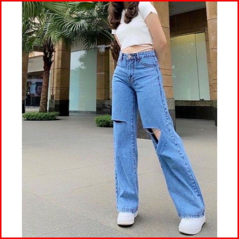 Cs Celana Kulot Jeans Sobek Ripped Denim Wanita Haigwaist Jeans Panjang Kulot Model Sobek Lutut
