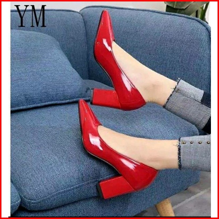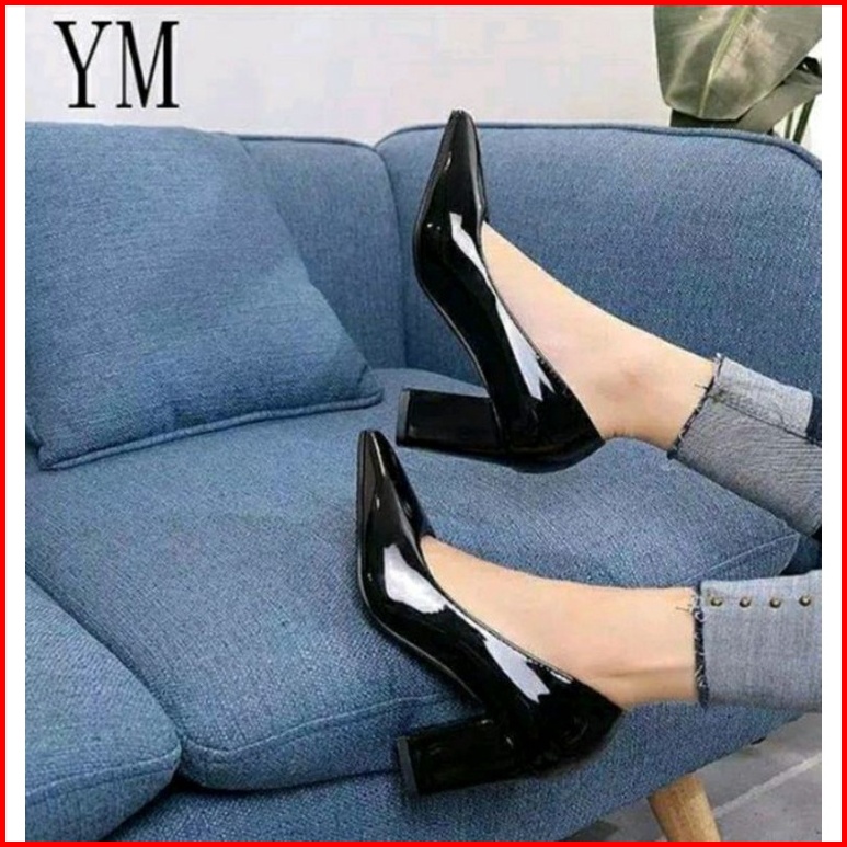 Sepatu Pantopel Wanita Sepatu Kerja Sepatu Kantor Glosy Tinggi Hak 7cm Zr T 02