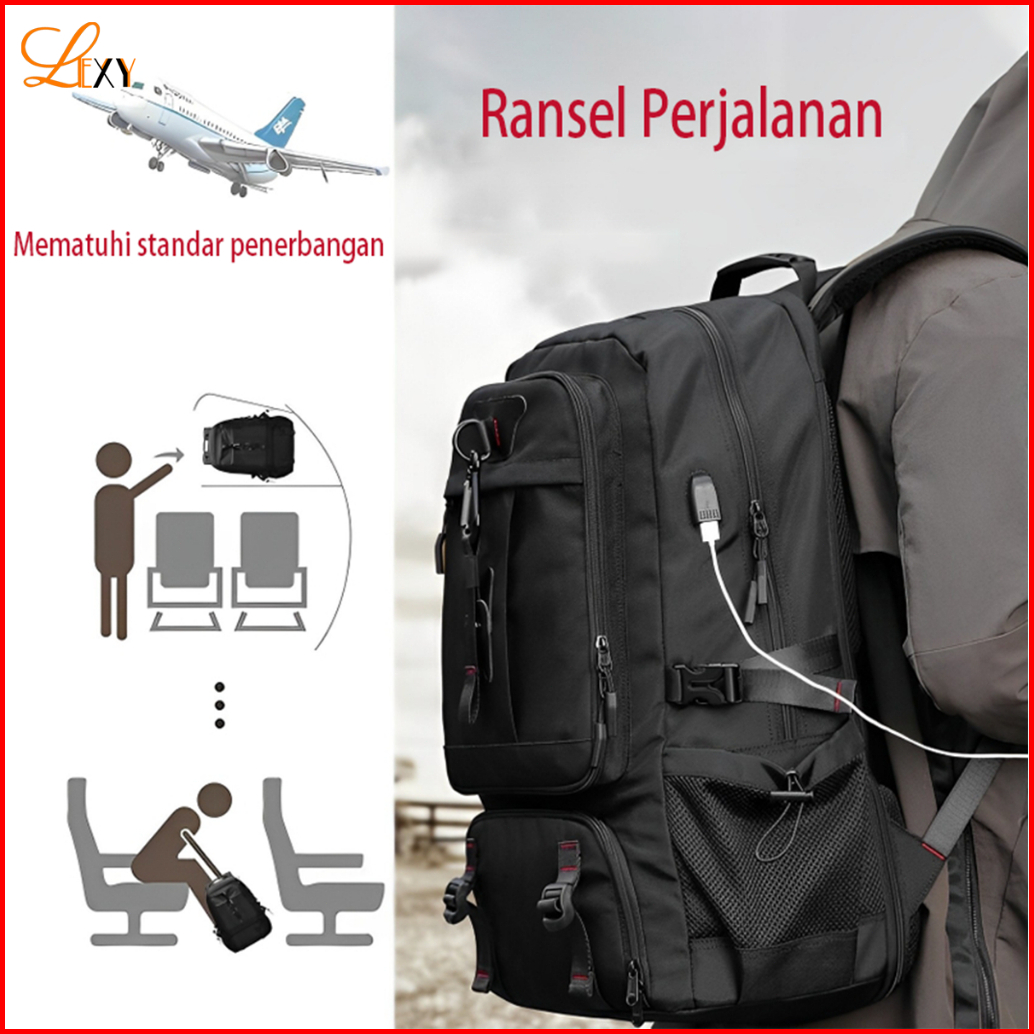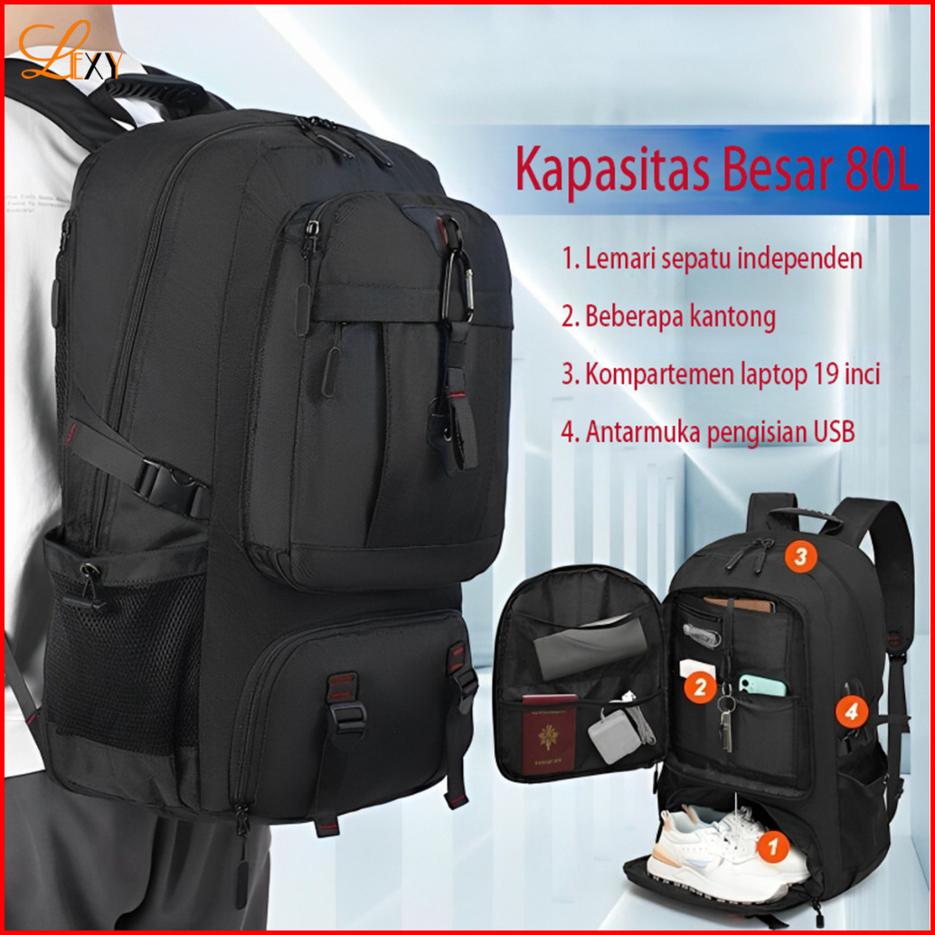 Lexy Tas Ransel Perjalanan Pria 50-80l Tas Gunung Tahan Air Multifungsi Luar Ruangan Kapasitas Besar