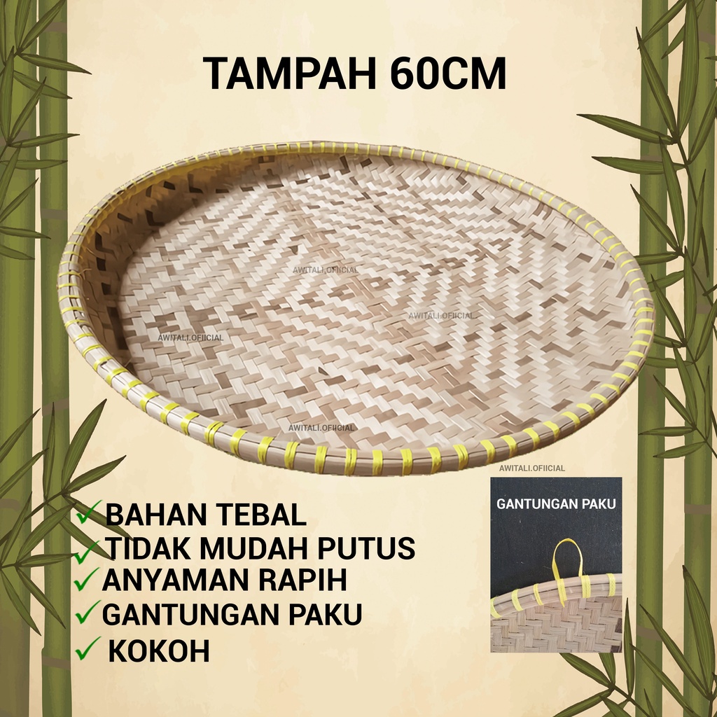 Nyiru Badang Bambu Bulat Besar Diameter 50/56/60 Awitali Tampi Nampan Anyaman