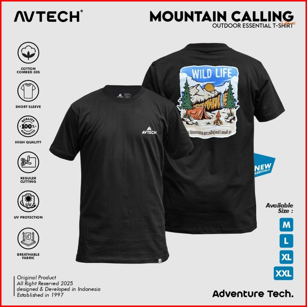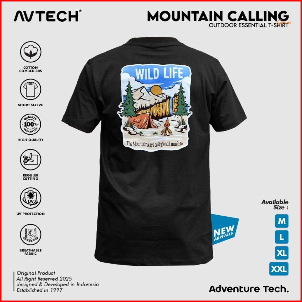 Avtech - T-shirt Kaos Lengan Pendek Pria Wanita Casual Harian Cotton Combed - Mountain Calling
