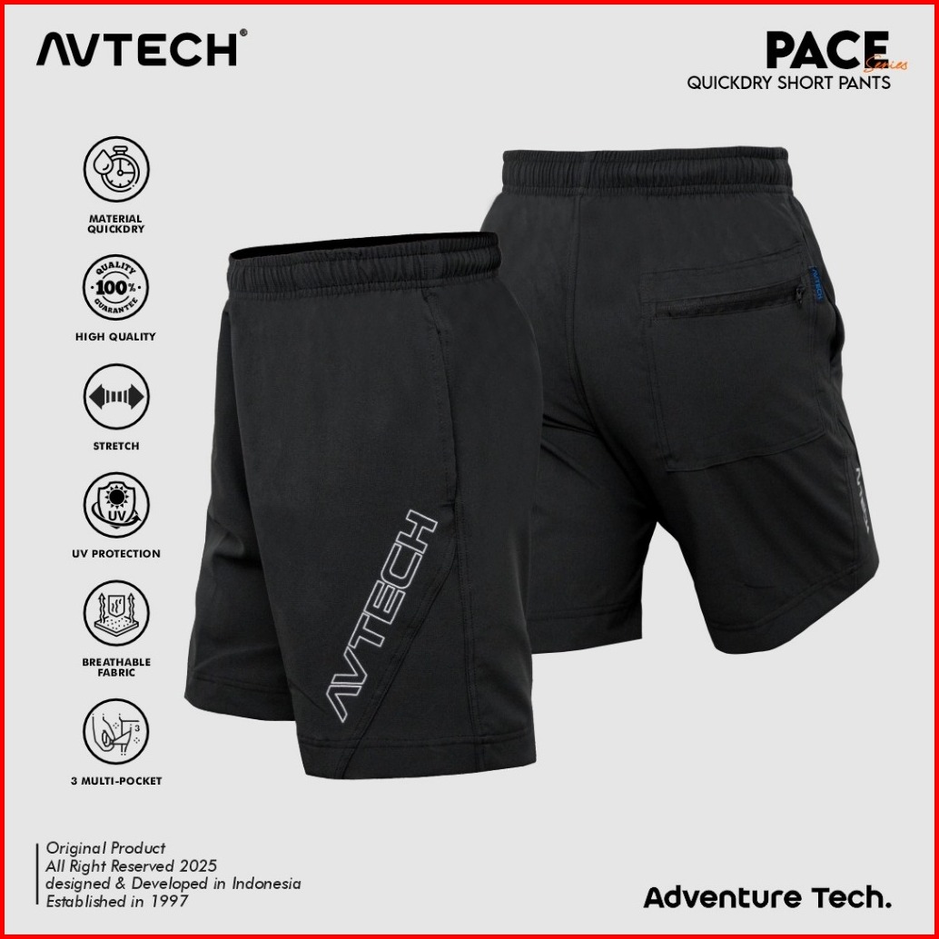 Avtech - Celana Pendek Pria Wanita Olahraga Lari Gym Outdoor Trekking Stretch Quick Dry - Pace