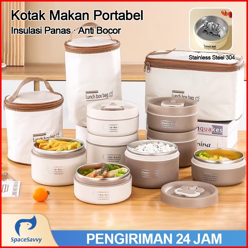 Spacesavvy Stainless Steel Kotak Makan Mangkok Sup Multifungsi Dengan Tutup Anti Tumpah Tempat Makan Bulat Kotak Makan S
