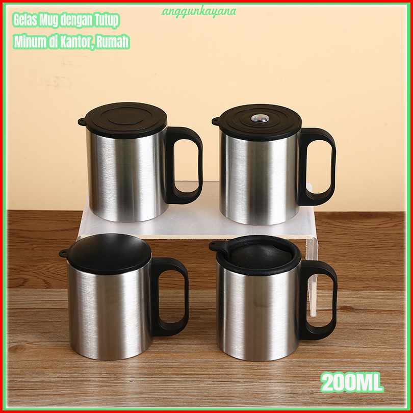 Gelas Kopi Stainless Steel 200ml Bisa Dingin Atau Panas Dengan Tutup