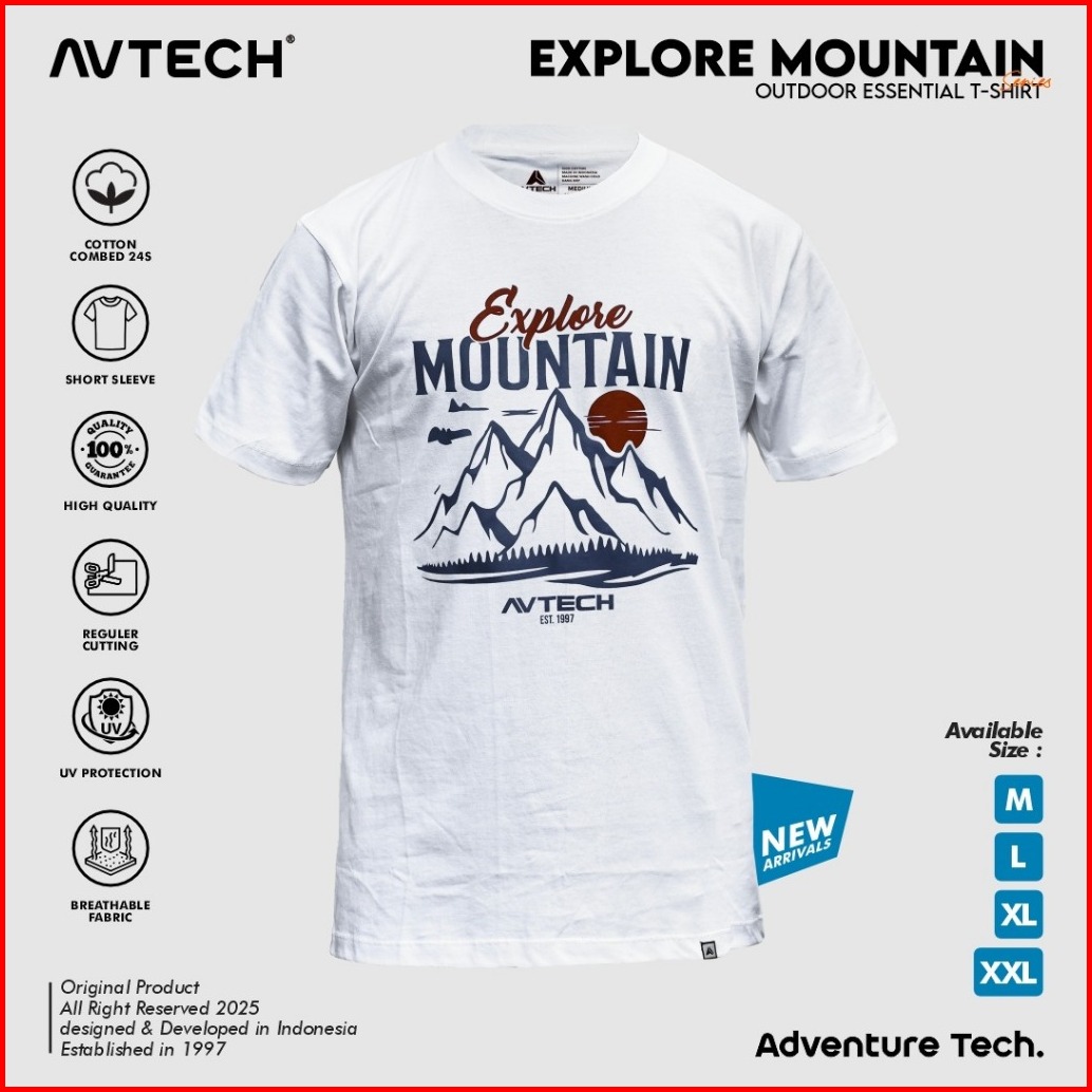 Avtech - T-shirt Kaos Lengan Pendek Pria Wanita Casual Harian Cotton Combed - Explore Mountain